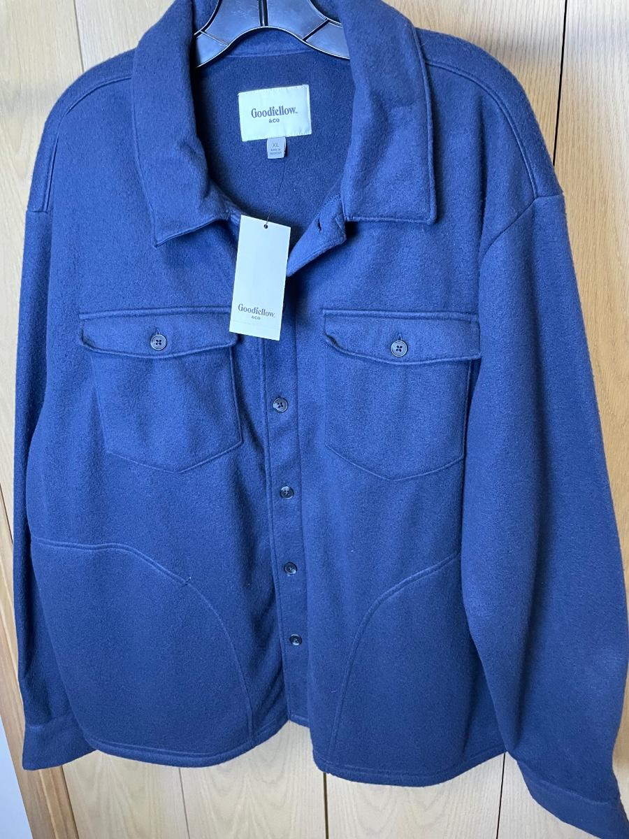 New Men’s Navy Fleece Button Down Shirt XL