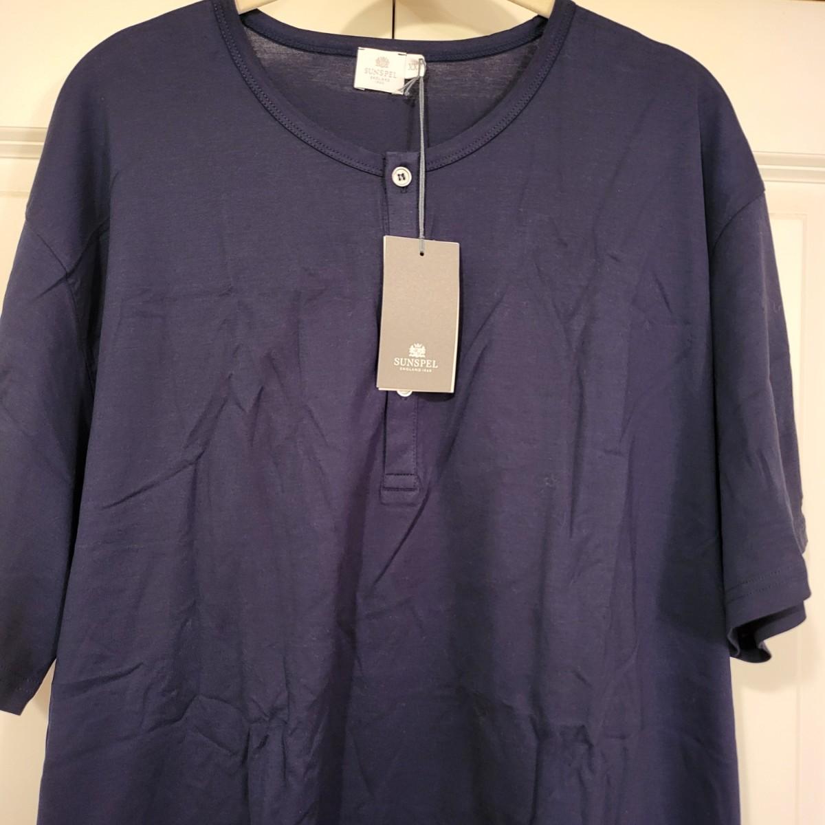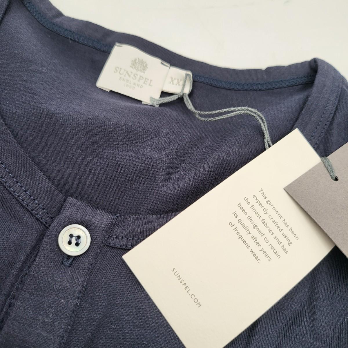 NEW Men's Sunspel Henley T-Shirt Navy XXL
