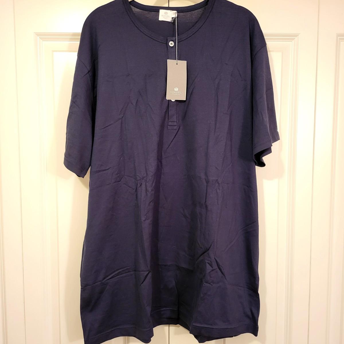 New Sunspel 100% cotton. Round neck three button front, sper soft men's short sleeve tee shirt, size XXL.