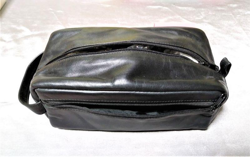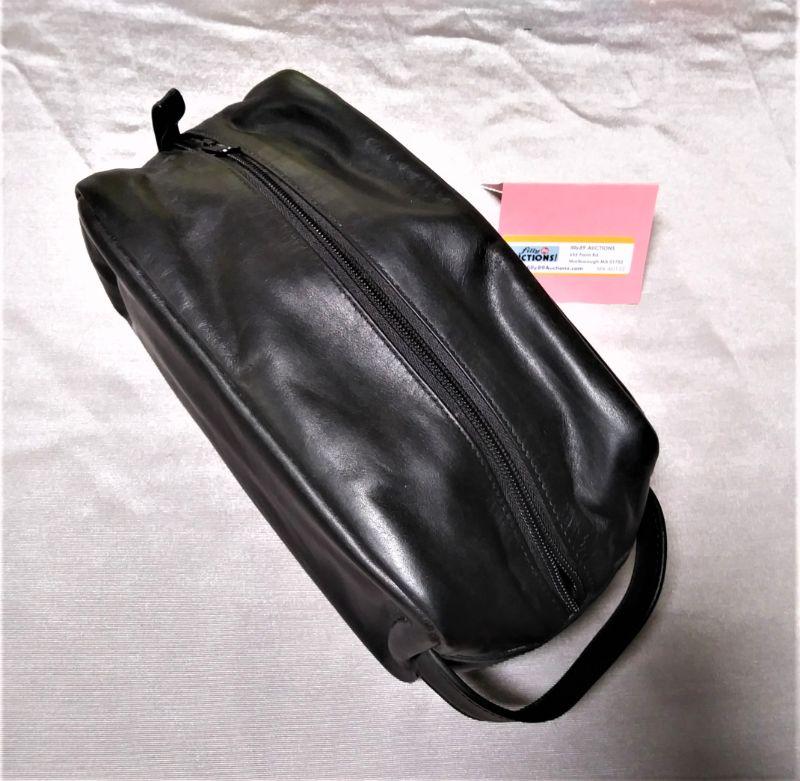 NEW * MENS TRAVEL TOILETRY BAG BLACK LEATHER MADE IN USA