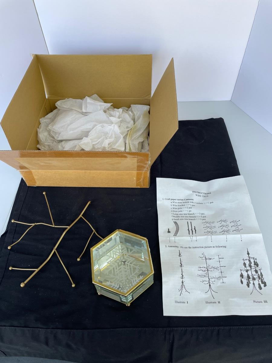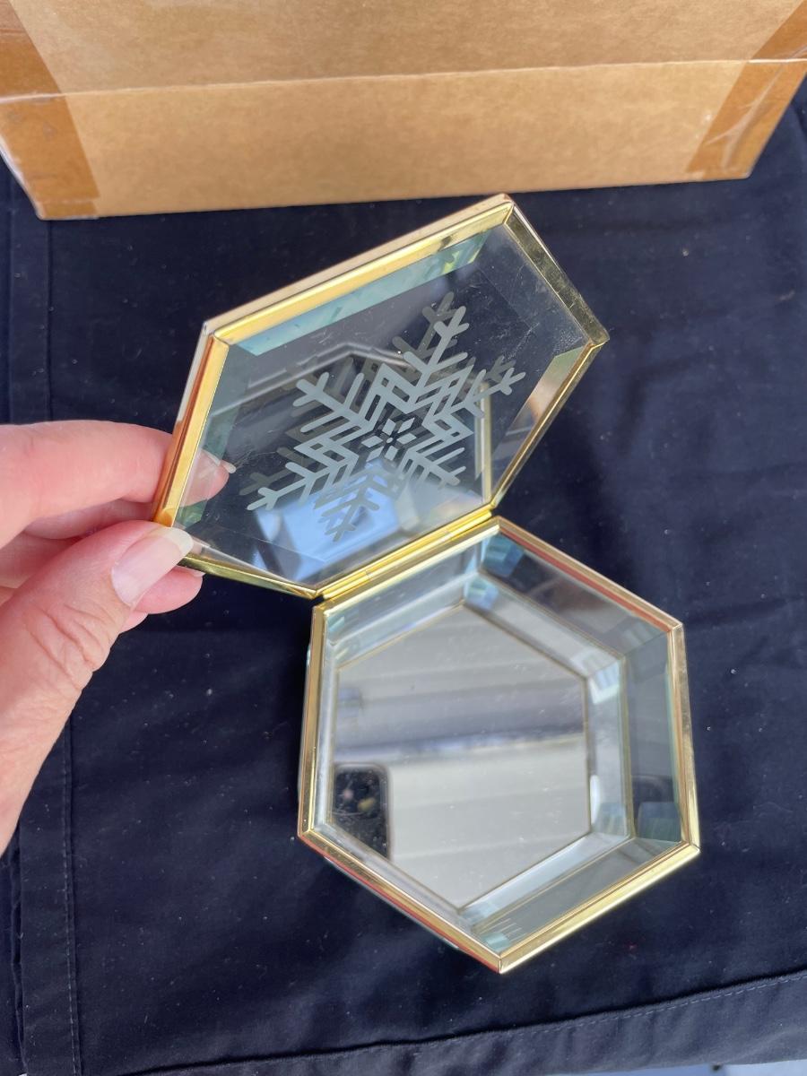 New Metal Holiday Tree, Glass snowflake Trinket Box
