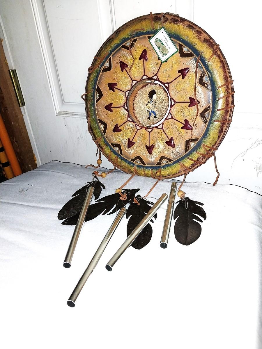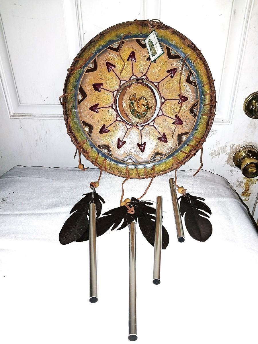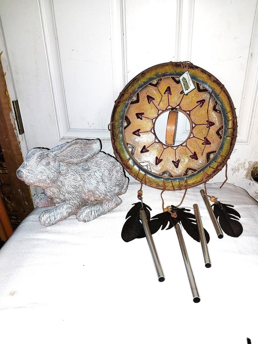 NEW METAL NATIVE AMERICAN WINDCHIME AND RABBIT YARD DECOR