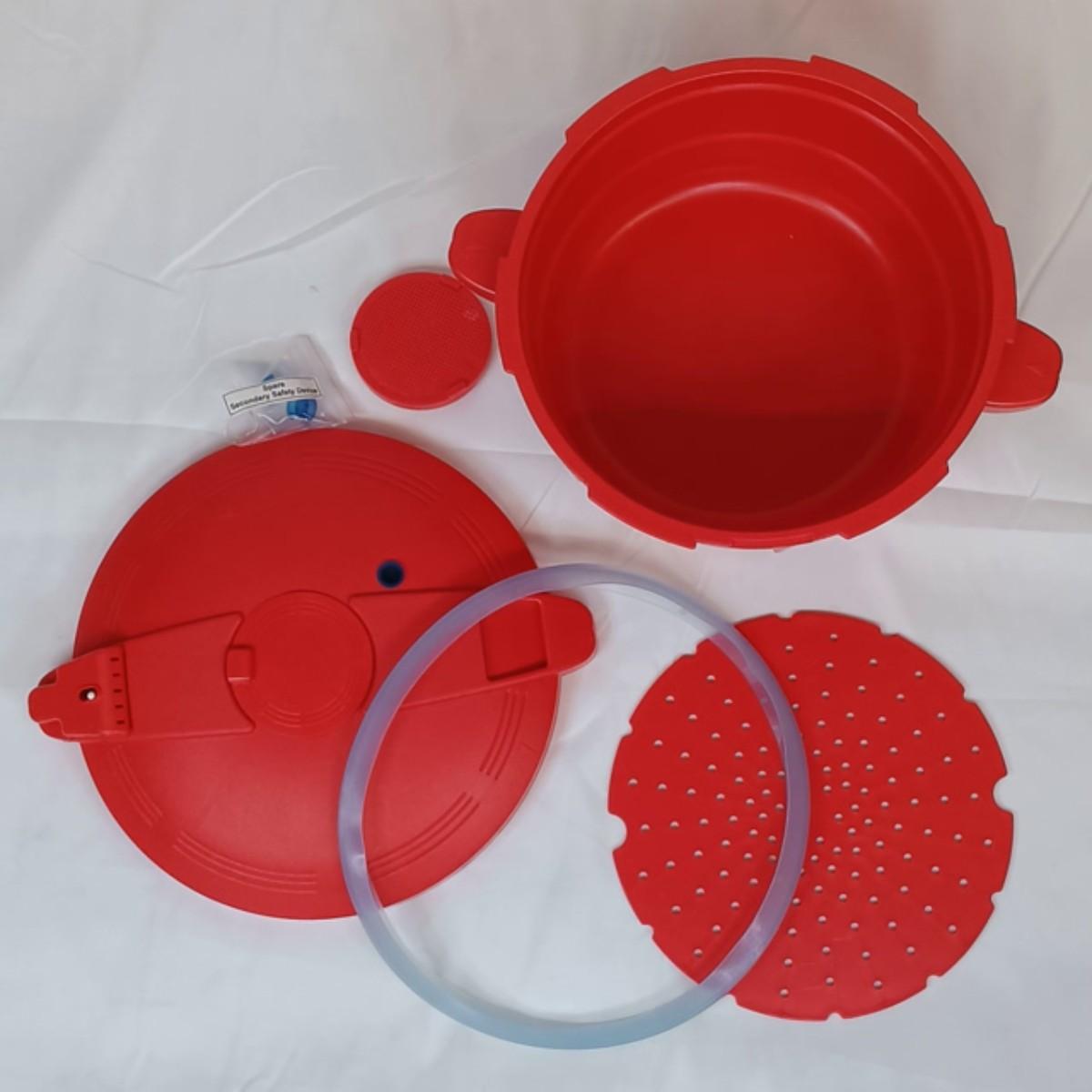 This is a brand new, open box microwave pressure cooker. Everything pictured is included.