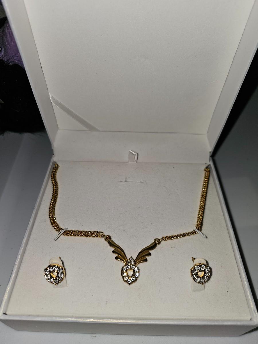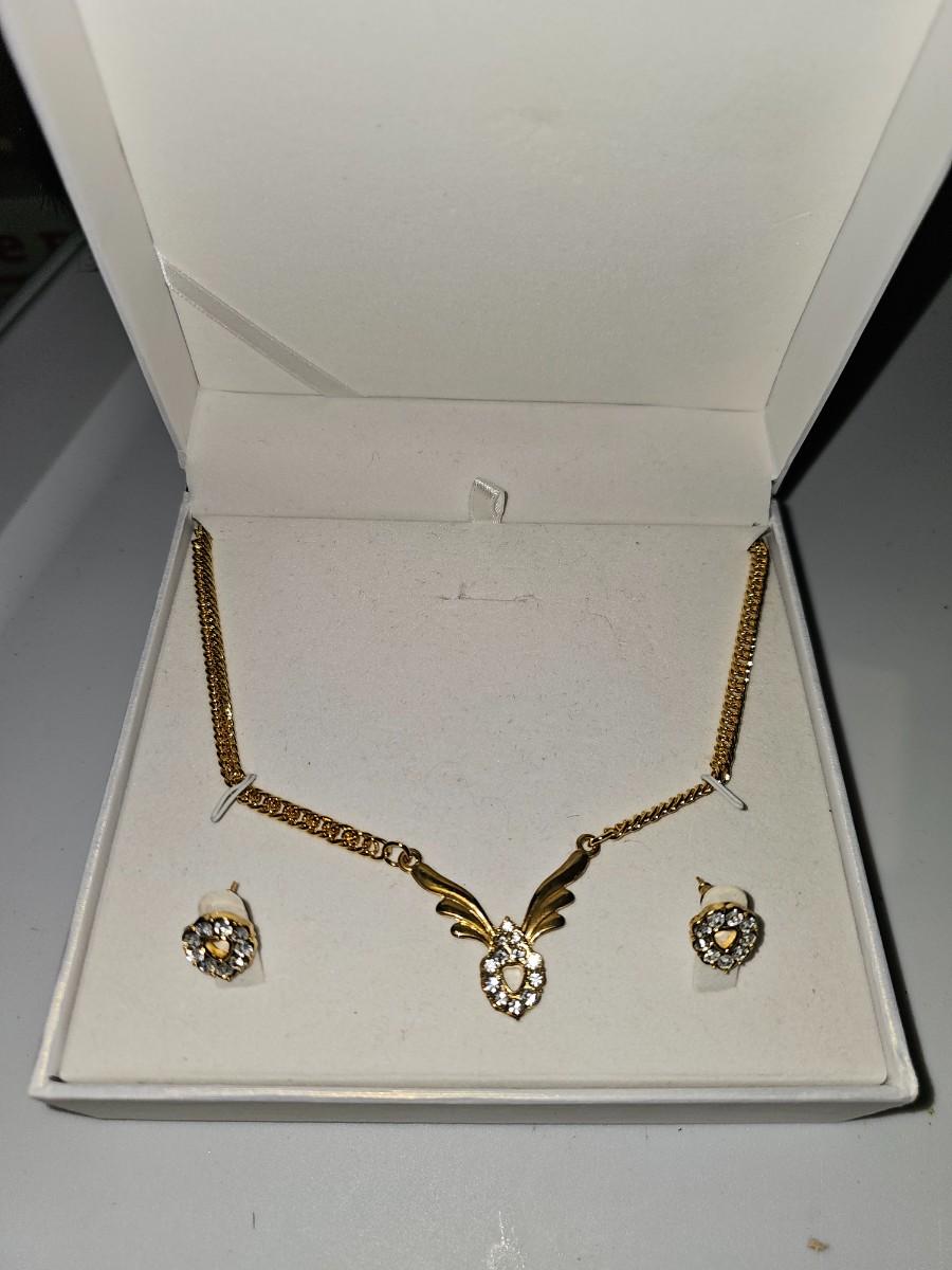Gold and Diamond studded necklace and earring set. Never been worn and appears to be in excellent condition.