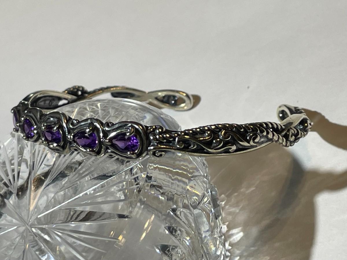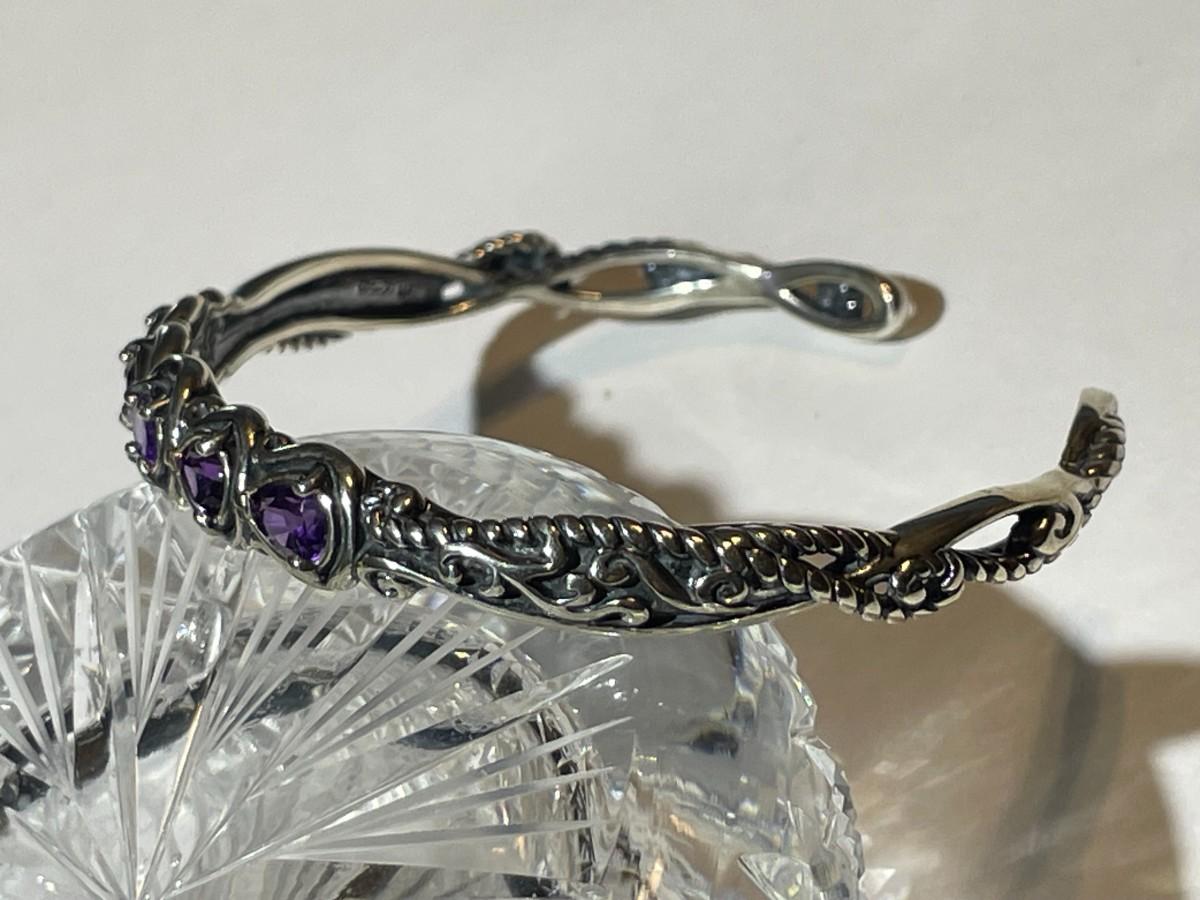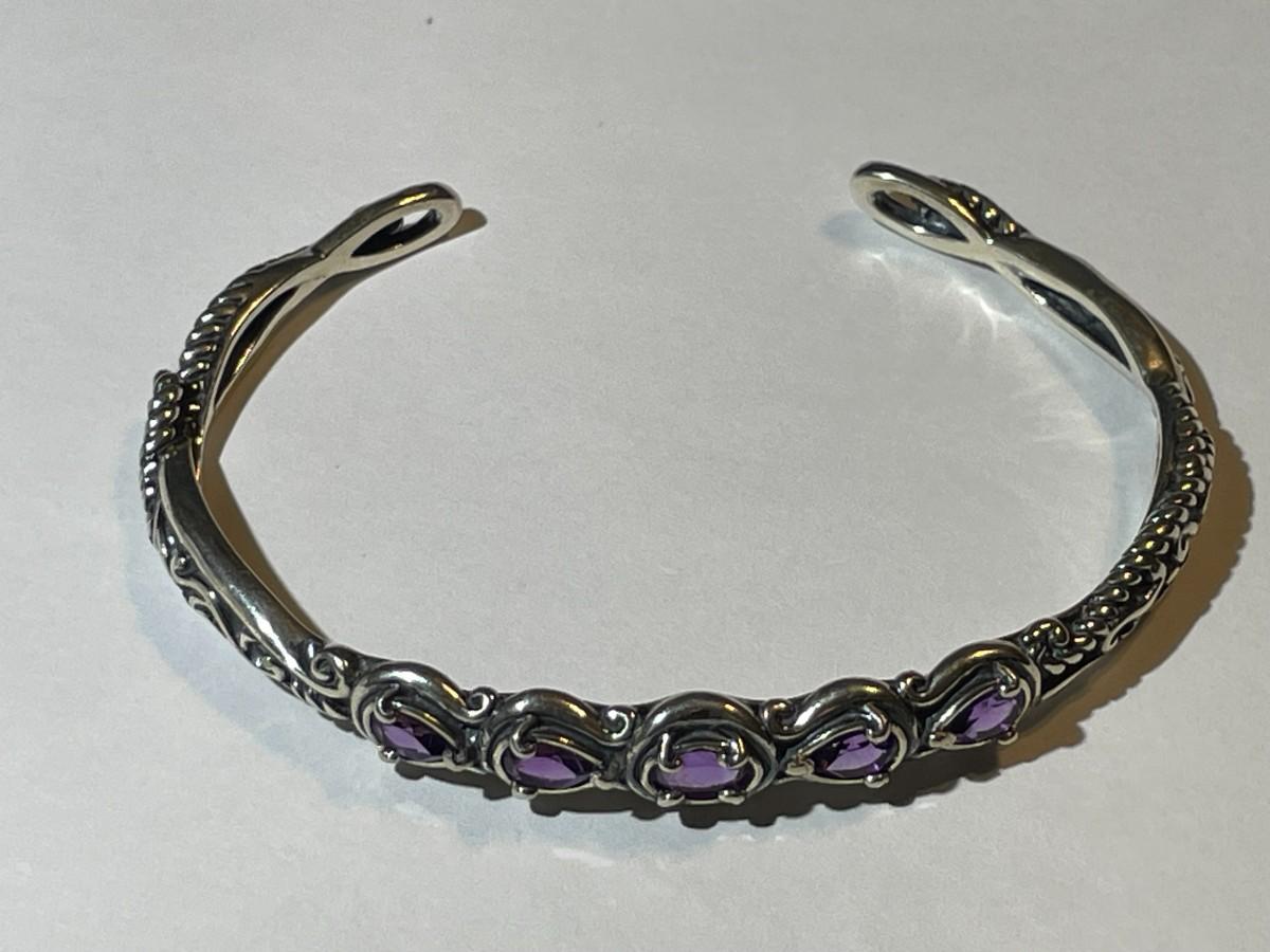 New Never Used CAROLYN POLLACK 925 Sterling Silver AMETHYST Swirl Cuff Bracelet Standard Size. (Jewelry #6).