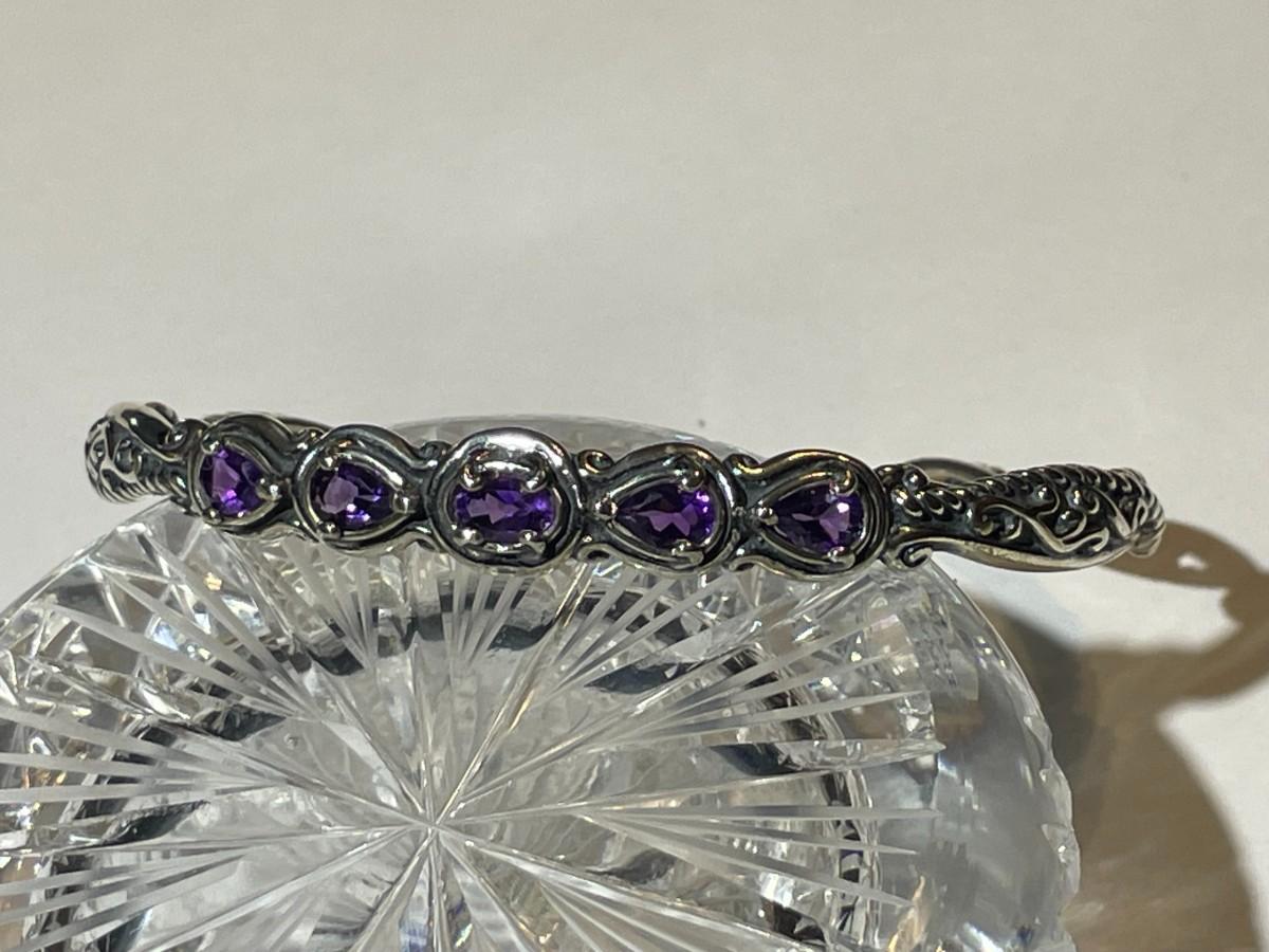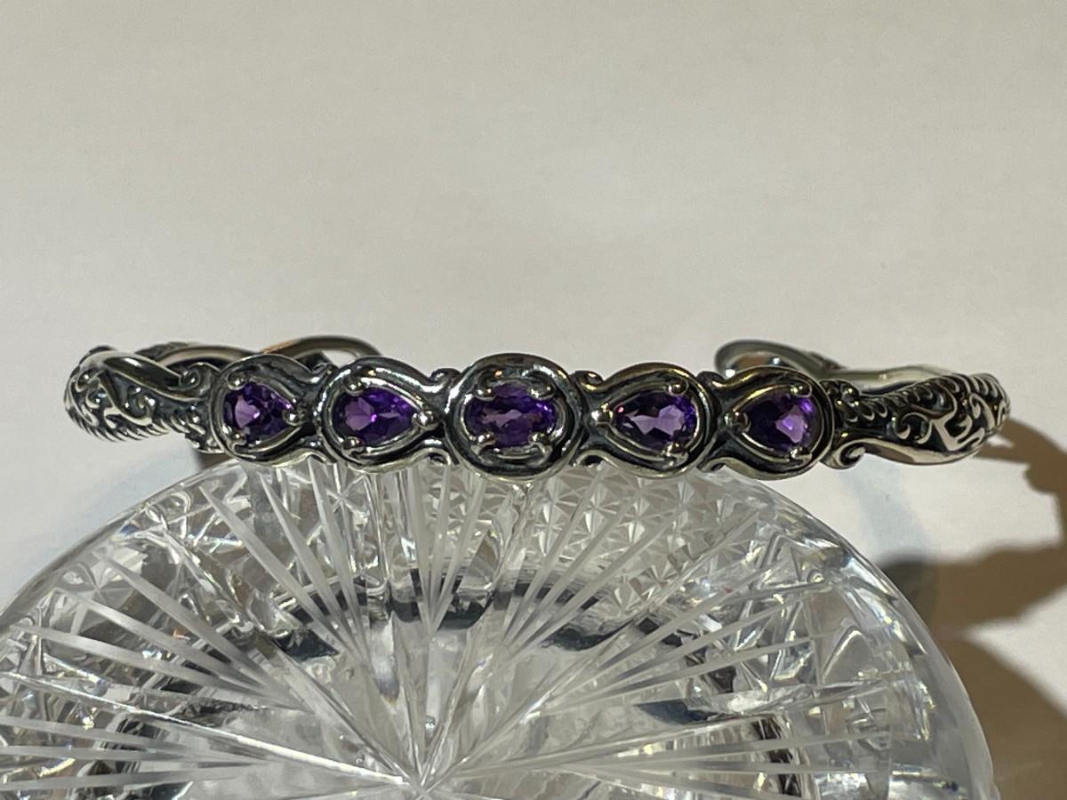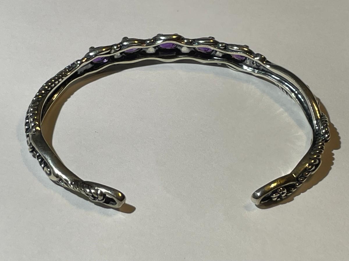 New Never Used CAROLYN POLLACK 925 Sterling Silver AMETHYST Swirl Cuff Bracelet Standard Size. (Jewelry #6).