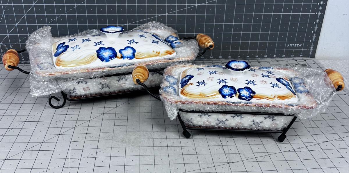 NEW NEVER USED! Fabulous Serving (2) Covered Casserole Temp-Tations. Rectangle.