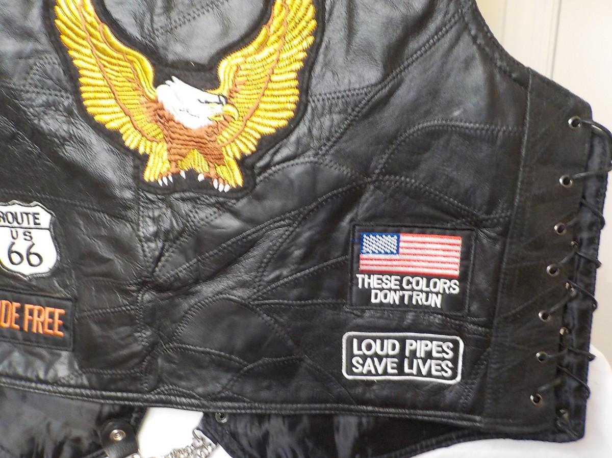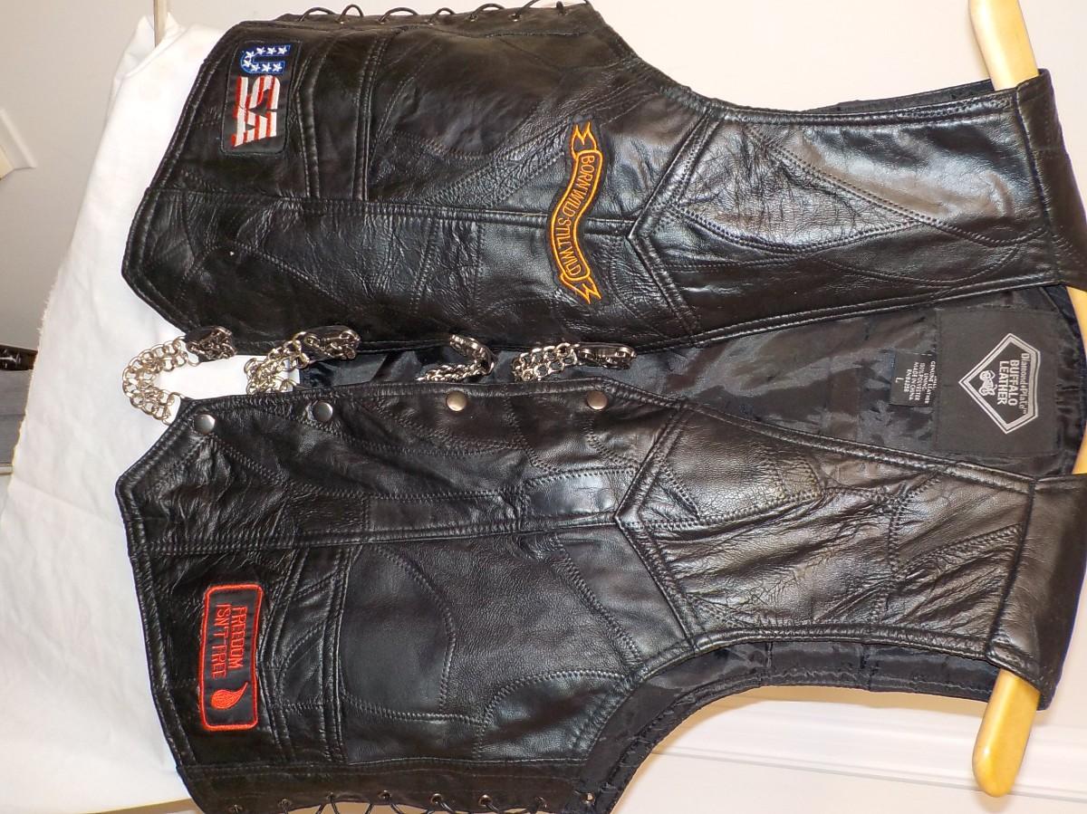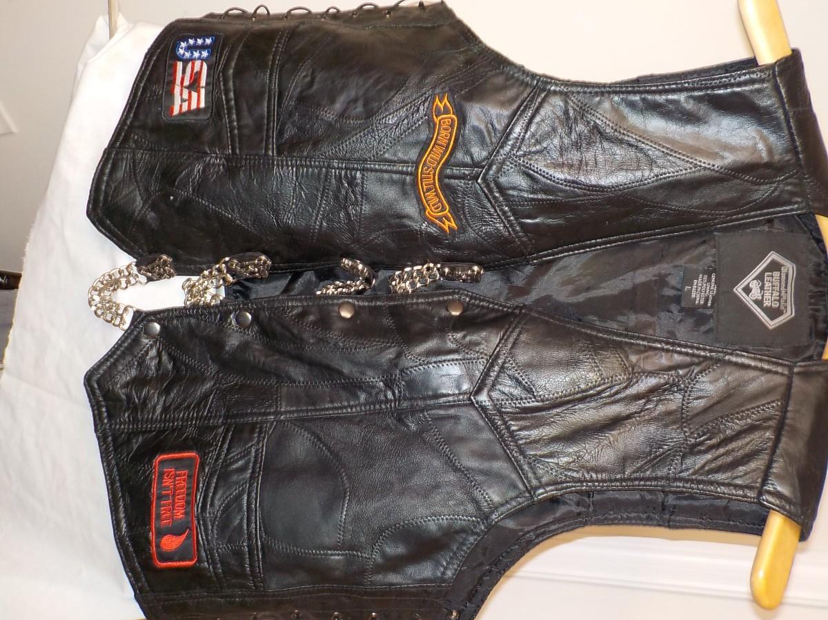 Size leather large vest. Super clean liner inside, no tears, or stains.