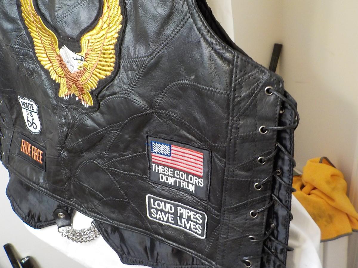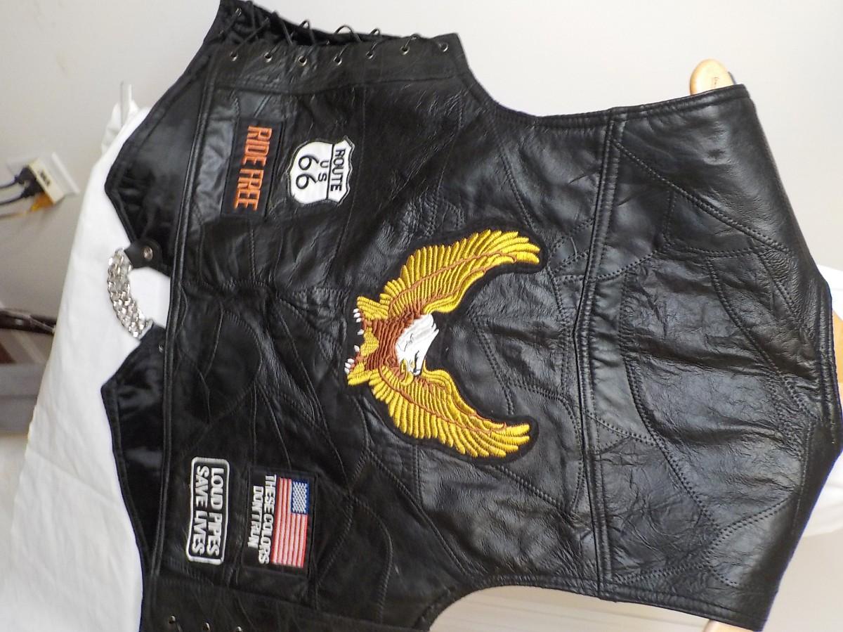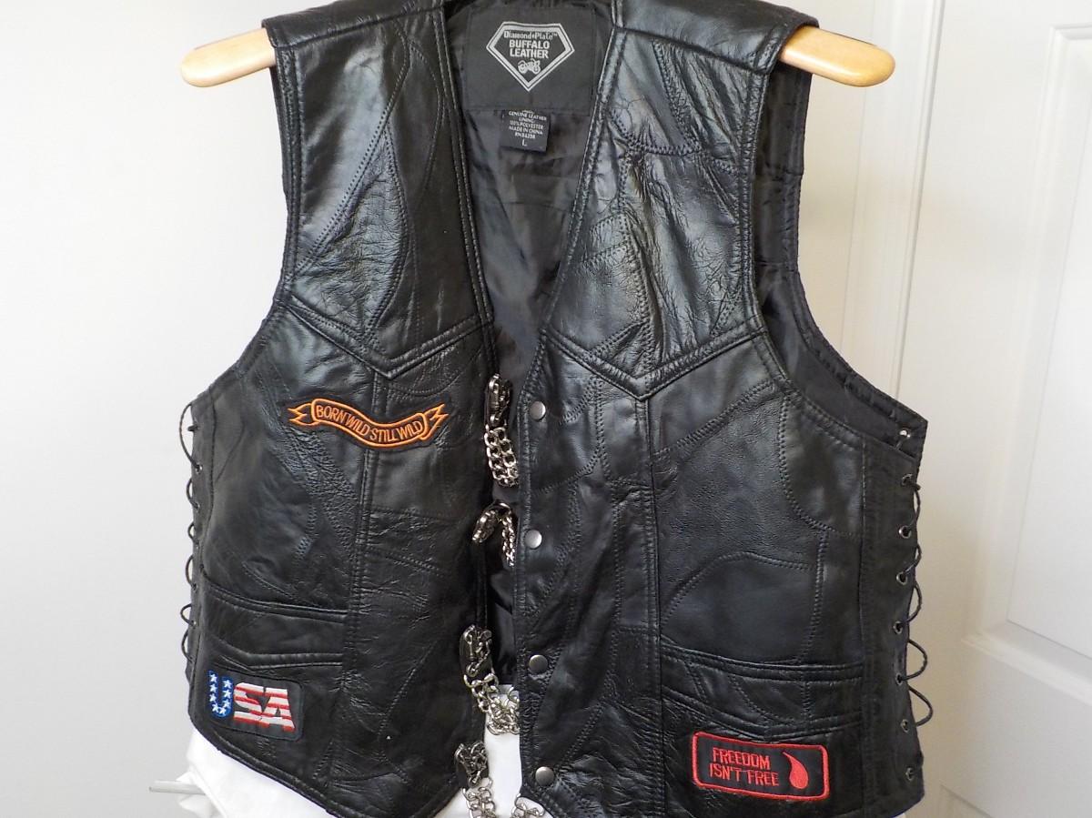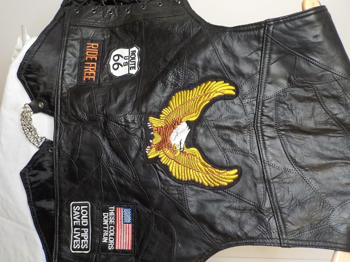 Size leather large vest. Super clean liner inside, no tears, or stains.