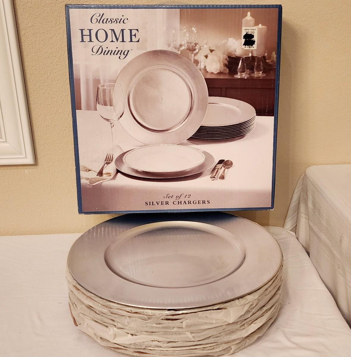 New / old stock - Classic Home Dining Set of 12 Silver Chargers