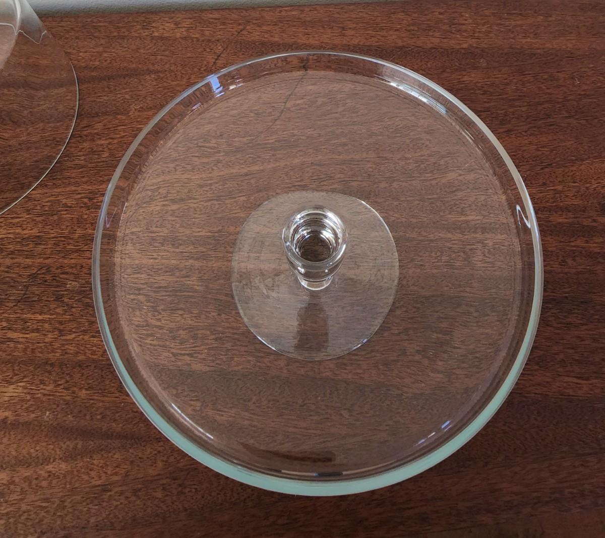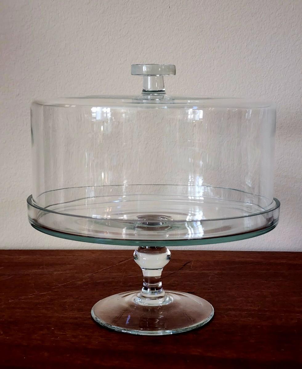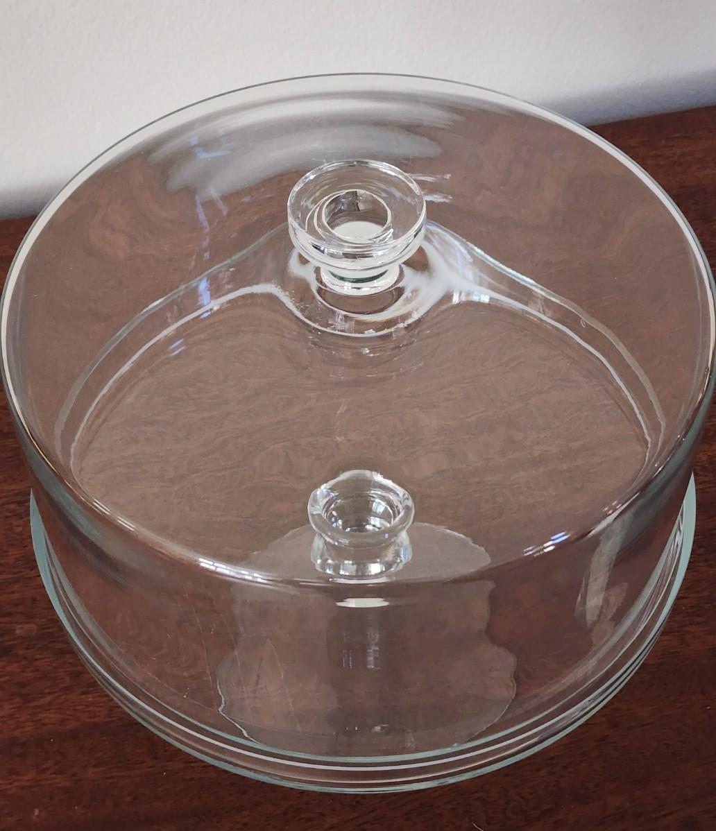 Never used - not a mark on it. This glass pedestal cake plate with lid is so perfect and elegant it looks like it belongs as a prop in a TV show.