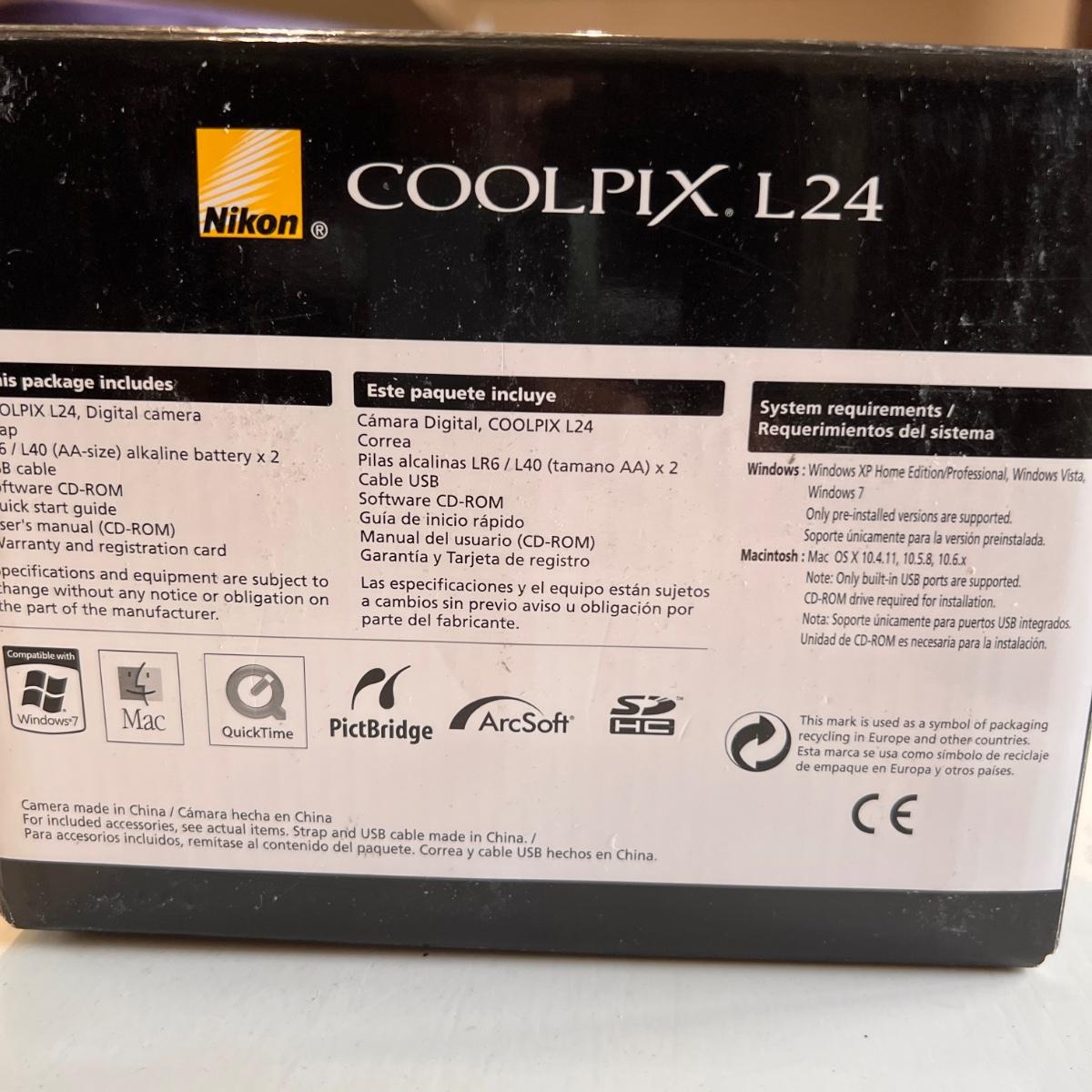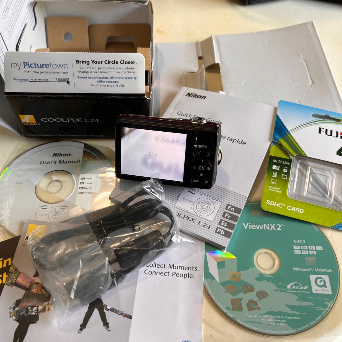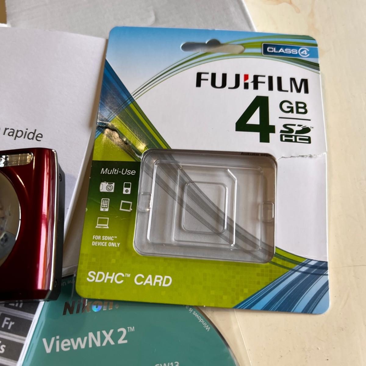New opened box coolpix camera with everything included - manual, software cd, cable and 4gb memory.