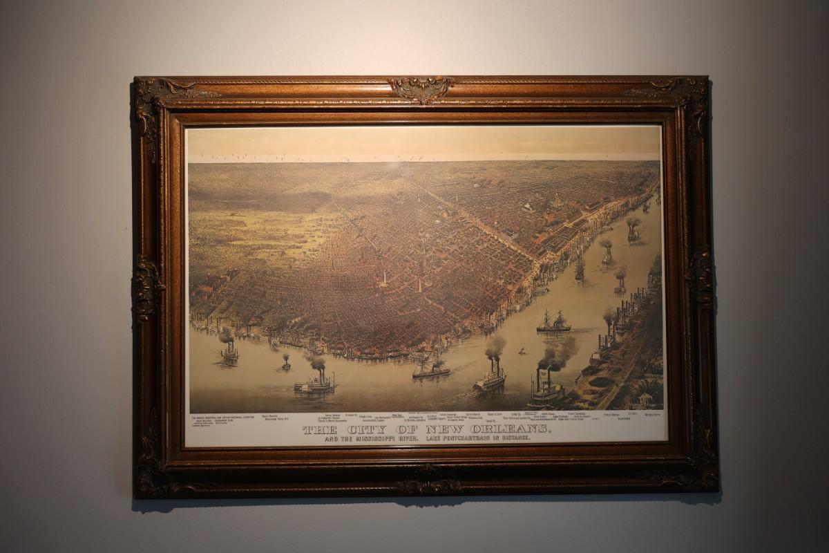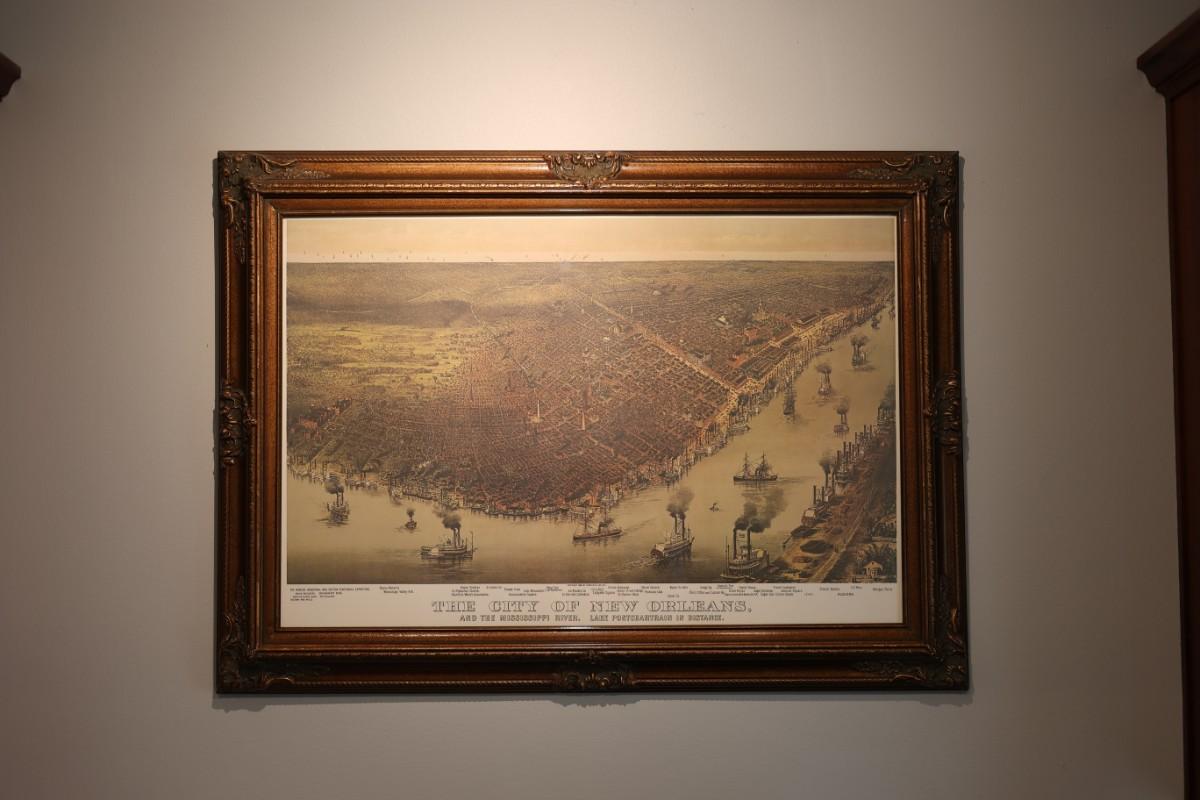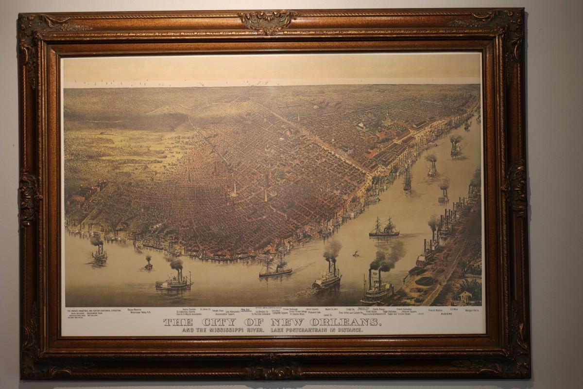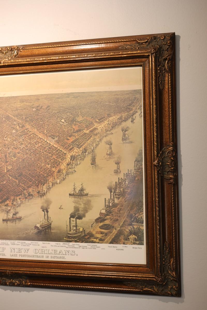 Large Framed New Orleans Aerial View Map Print with Ornate Frame