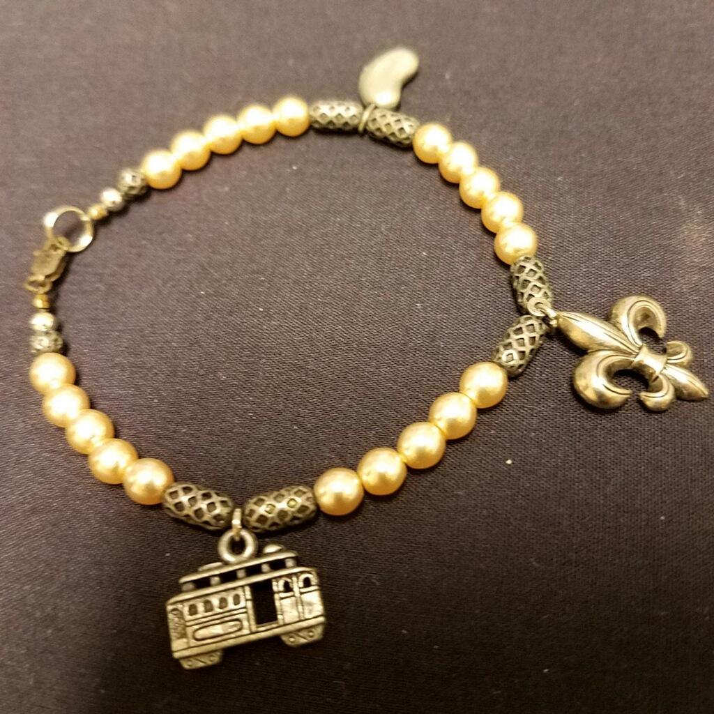 New Orleans themed bracelet w/3 charms
