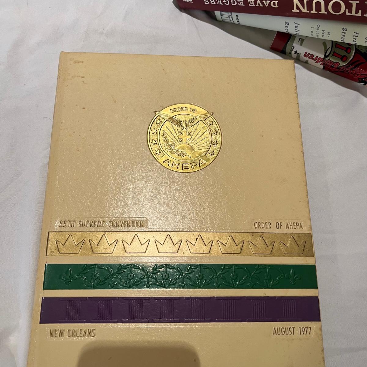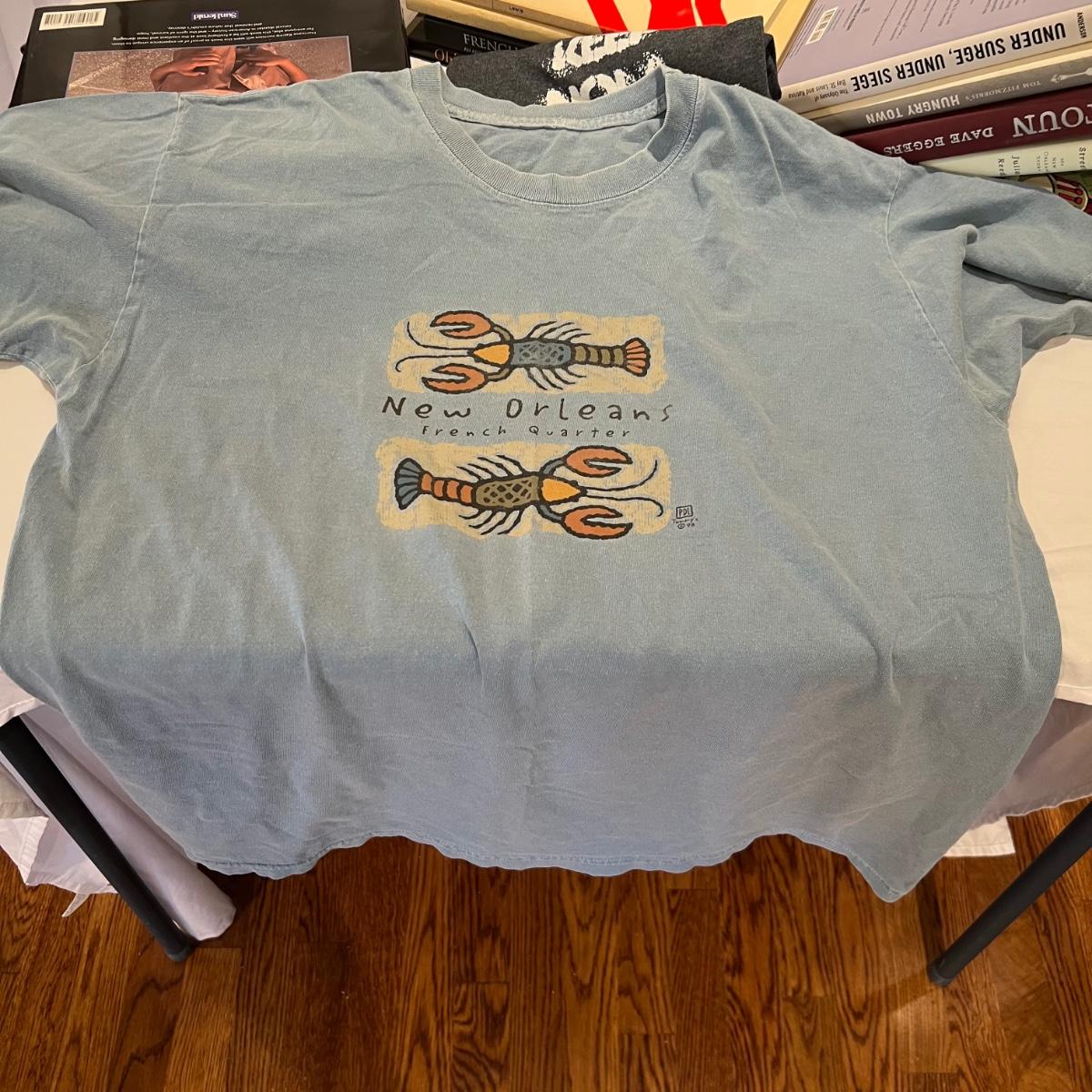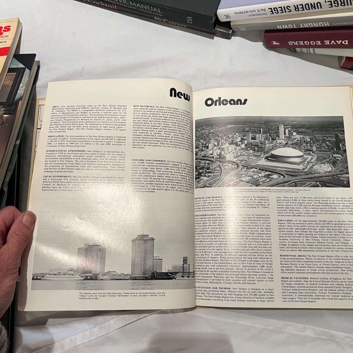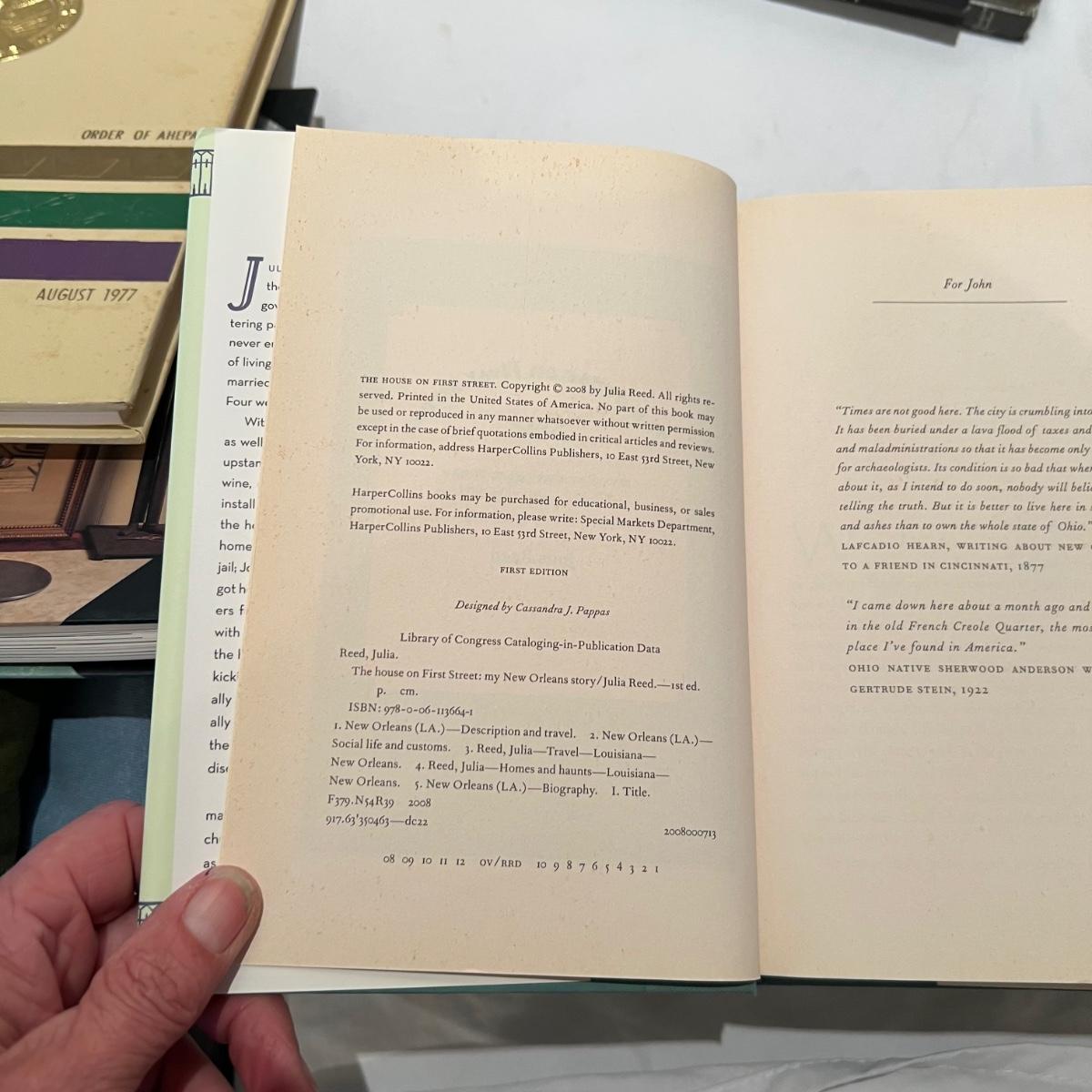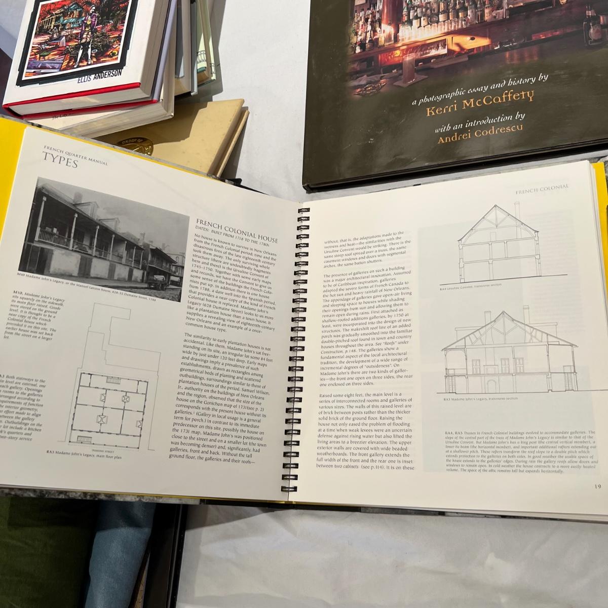 An assortment of New Orleans items includes 12 plus books, see images for titles and more information. Two magnets and three t-shirts also included; one is medium the other two are XL (blue shirt has no tag but appears to be XL. A couple of books are First Editions, see photos.