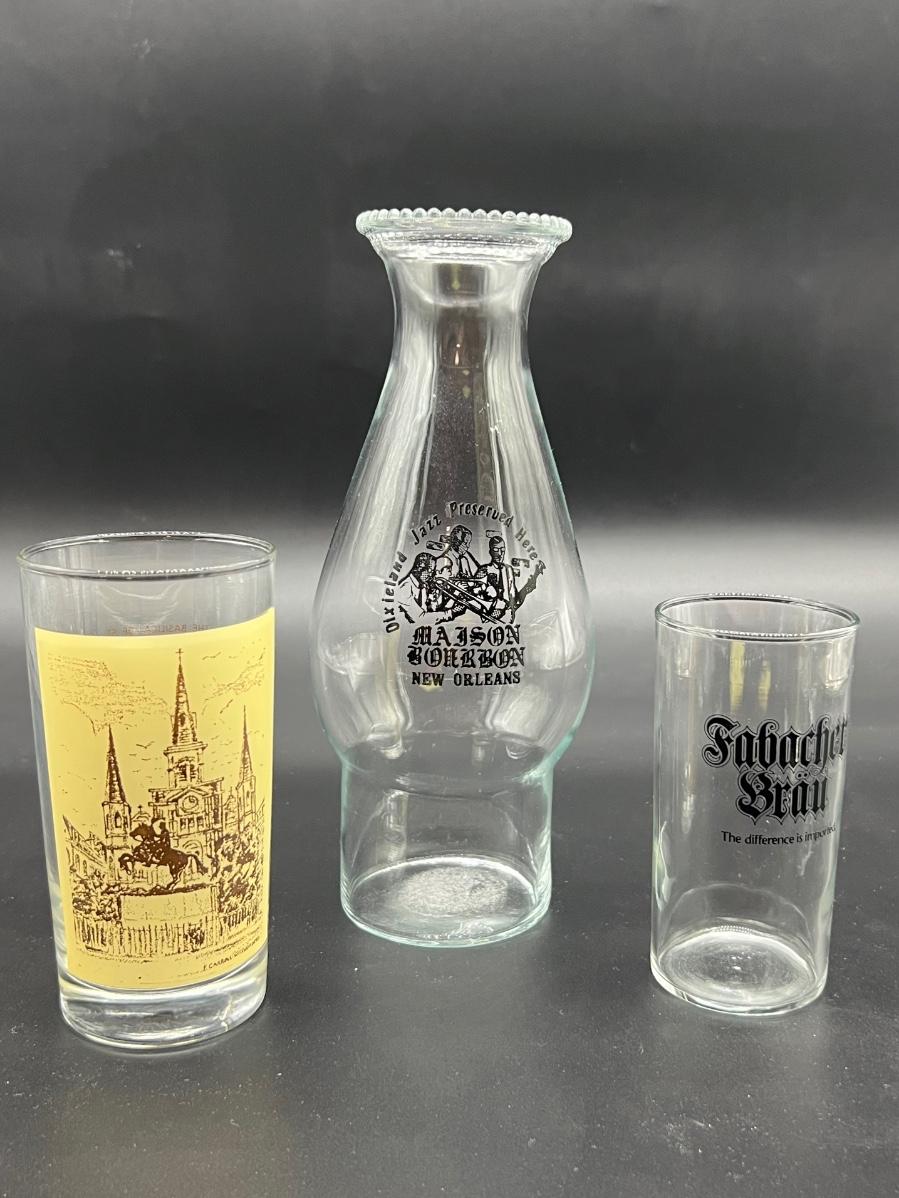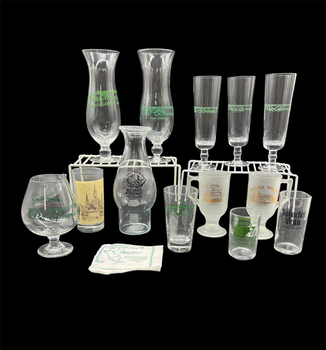Assortment of New Orleans Lot of Bar Glasses dating way back when the zip code of New Orleans 16! Lot includes 13 pieces total.