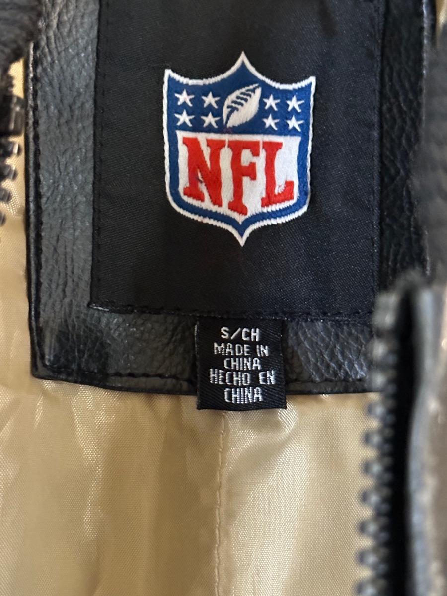 This jacket has been worn. It has minor wear and tear from usage. Its in overall good condition. I do not believe this to be an Authentic NFL Jacket, but a reproduction. It is nice and heavy.