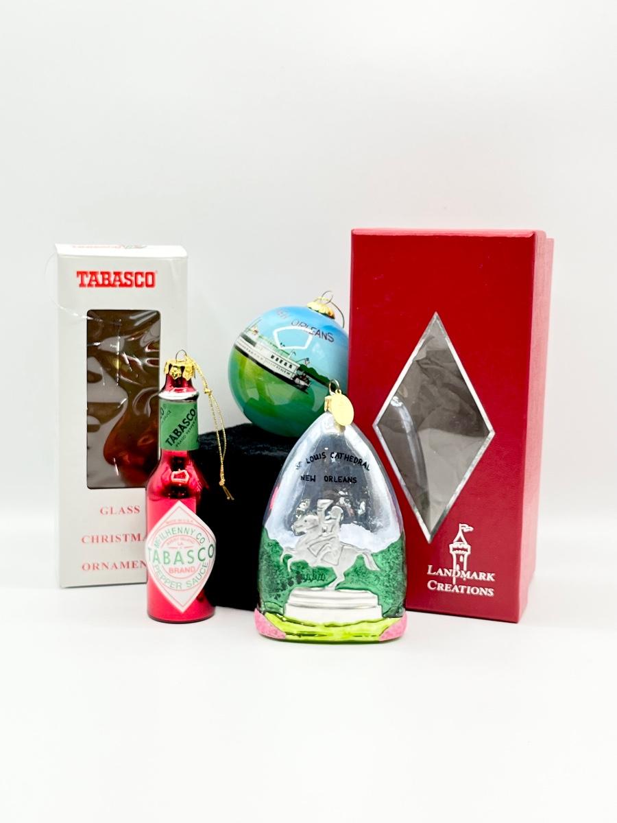Three (3) New Orleans Themed Glass Christmas Ornaments