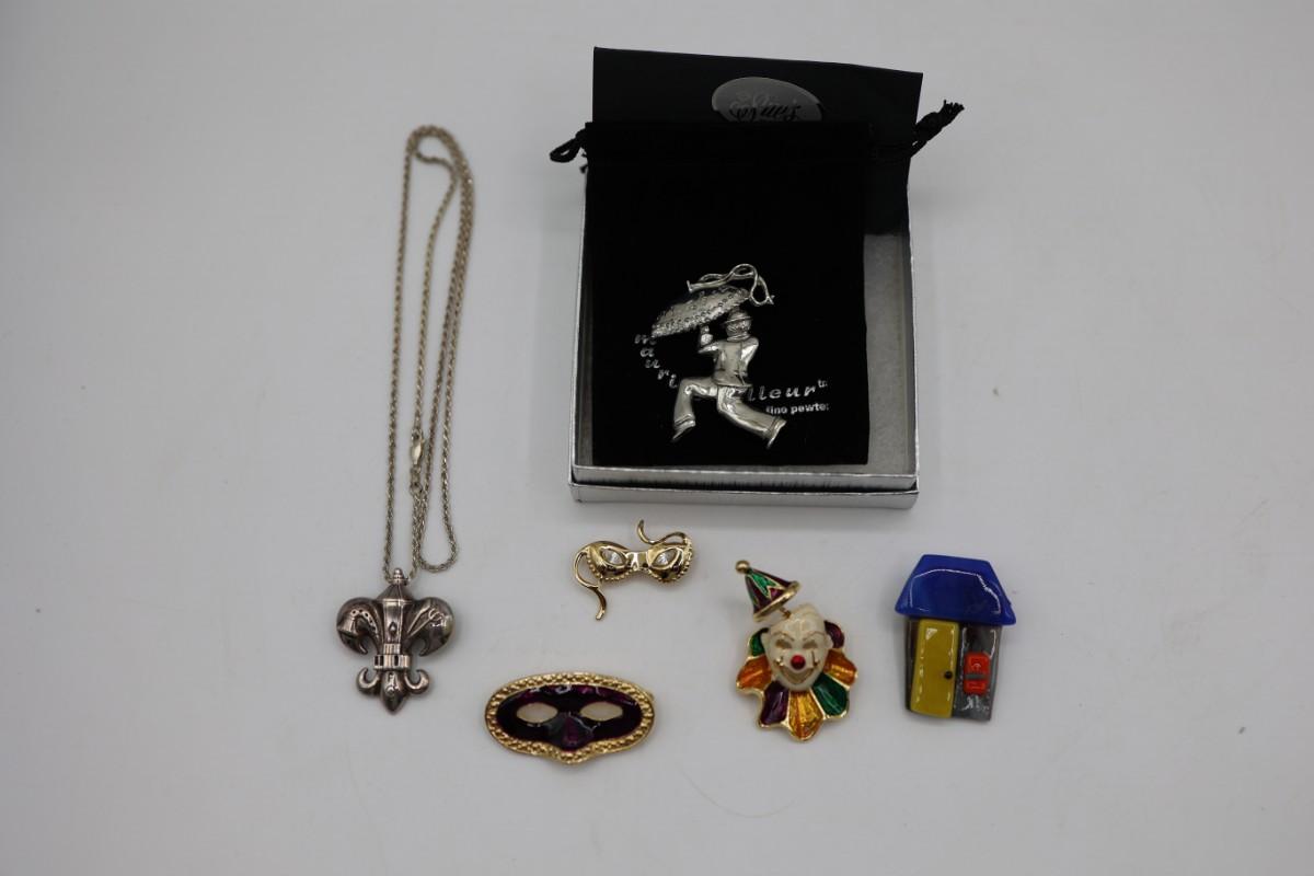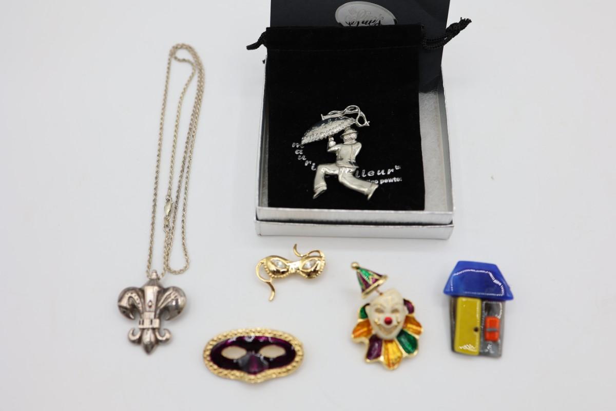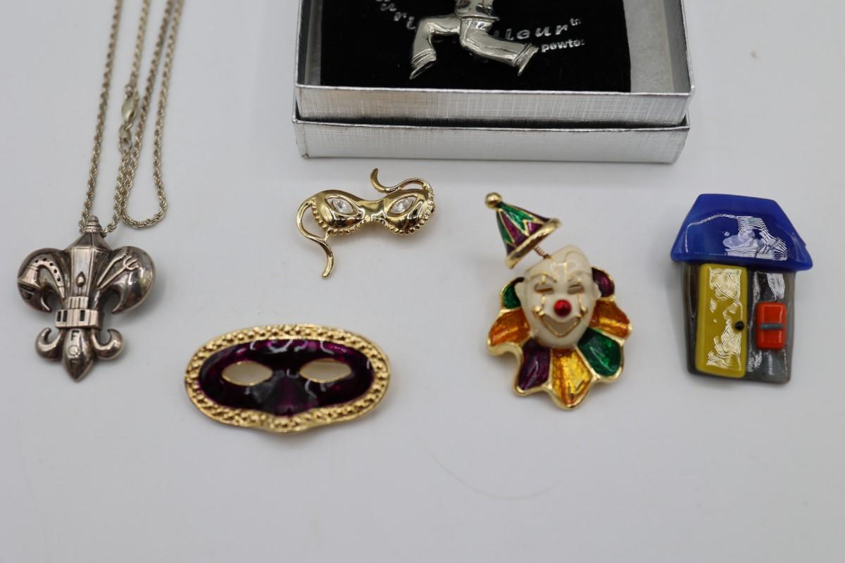 New Orleans Themed Necklace and Brooches