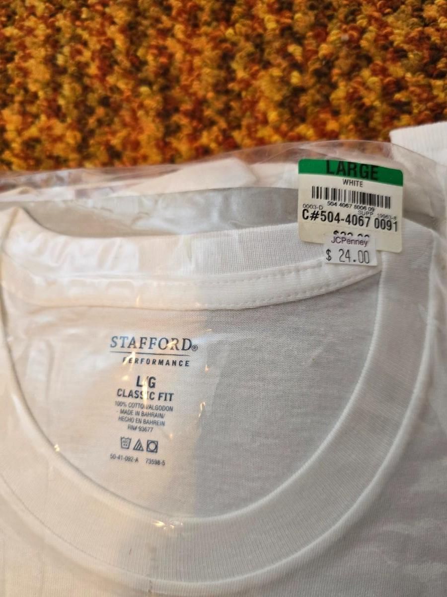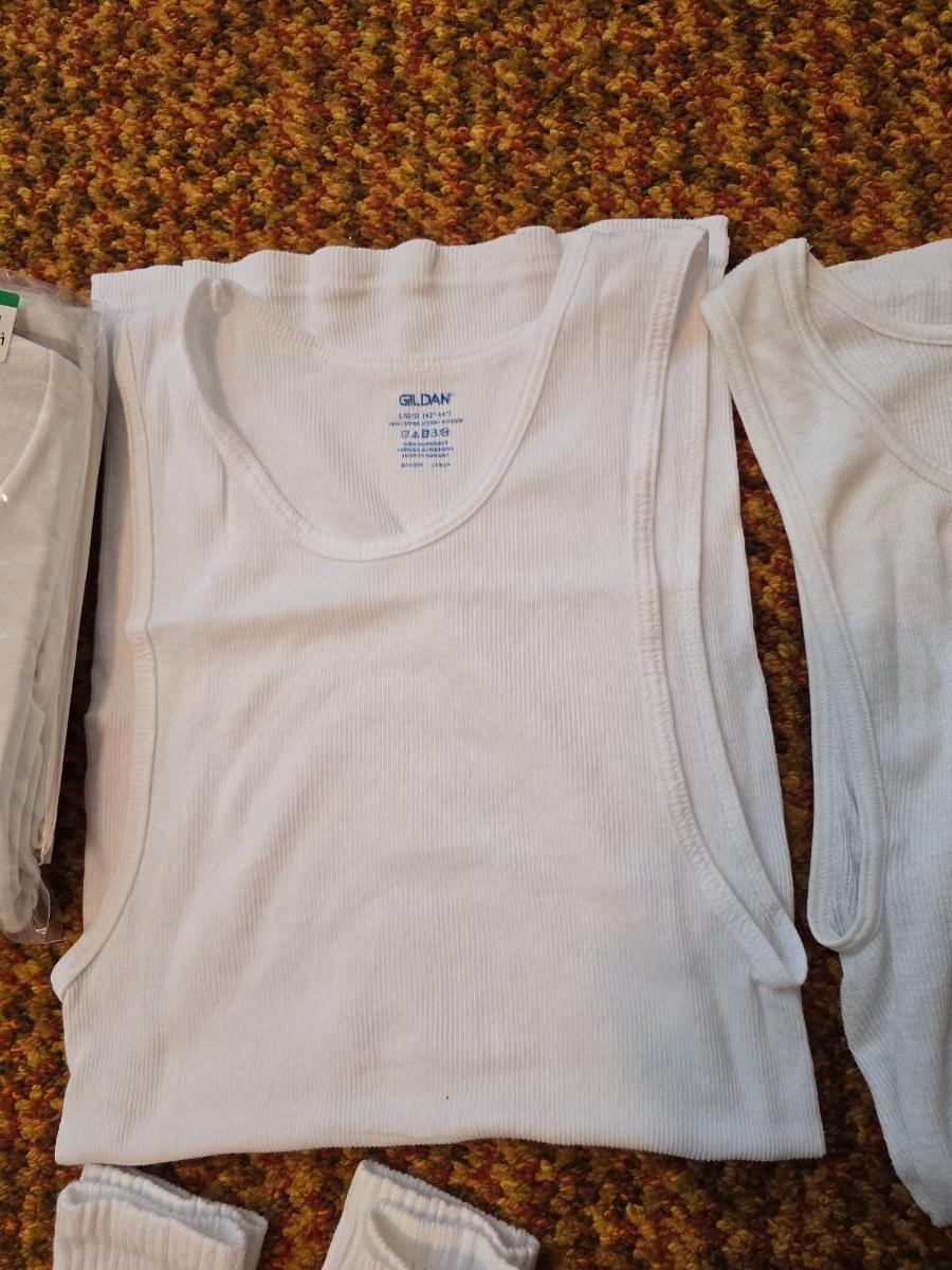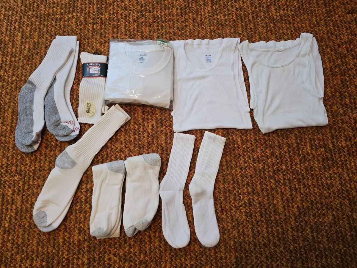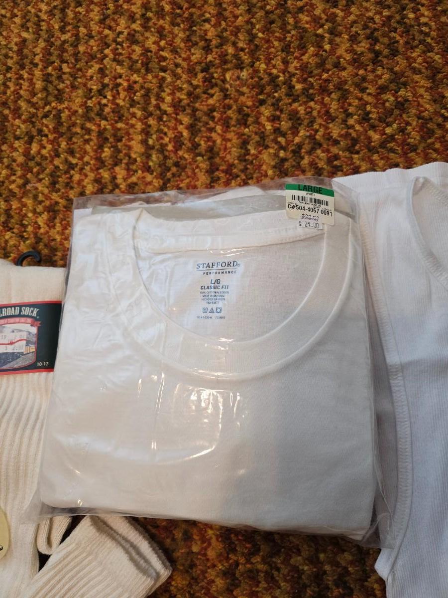 New pack of white Stafford Size Large t-shirts and a bunch of white socks - Some are new all are in excellent condition!