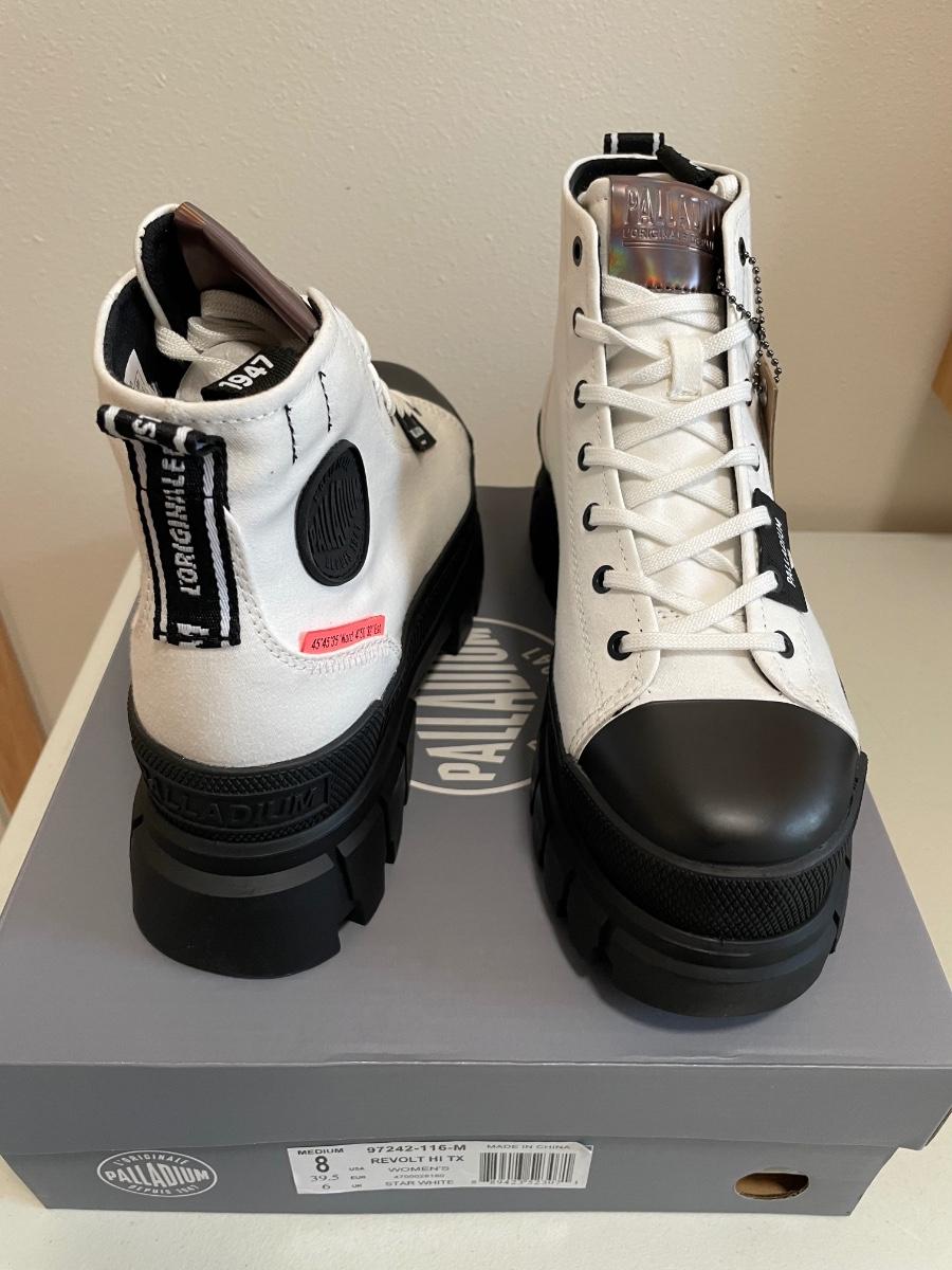 New Palladium Boots Revolt Hi White/Blk Size 8