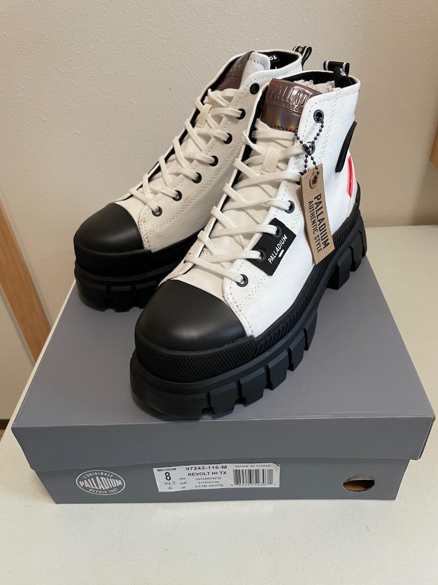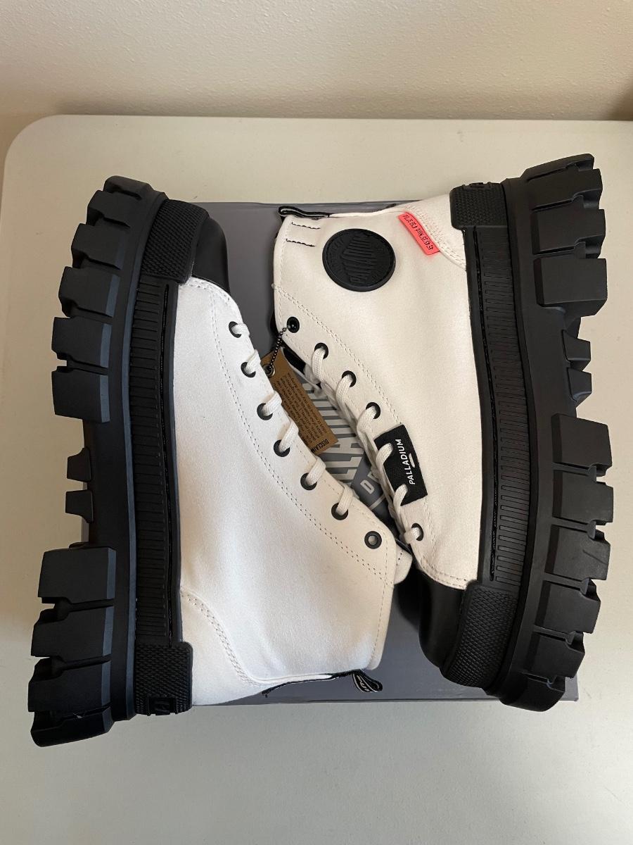 New Palladium Boots Revolt Hi White/Blk Size 8