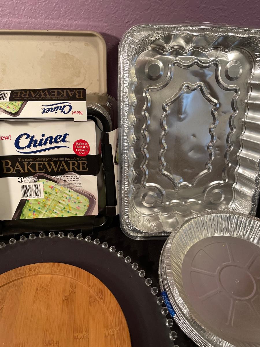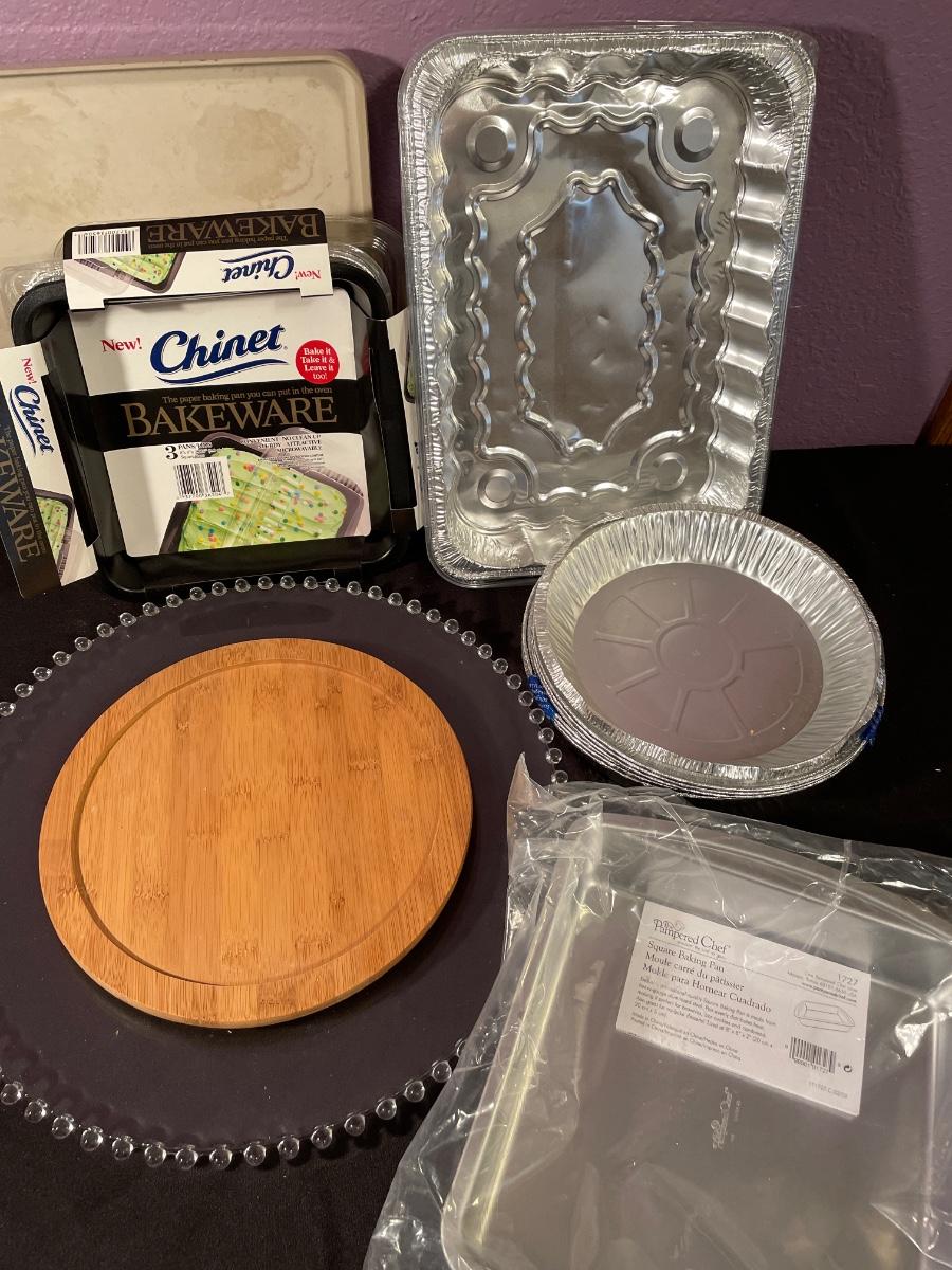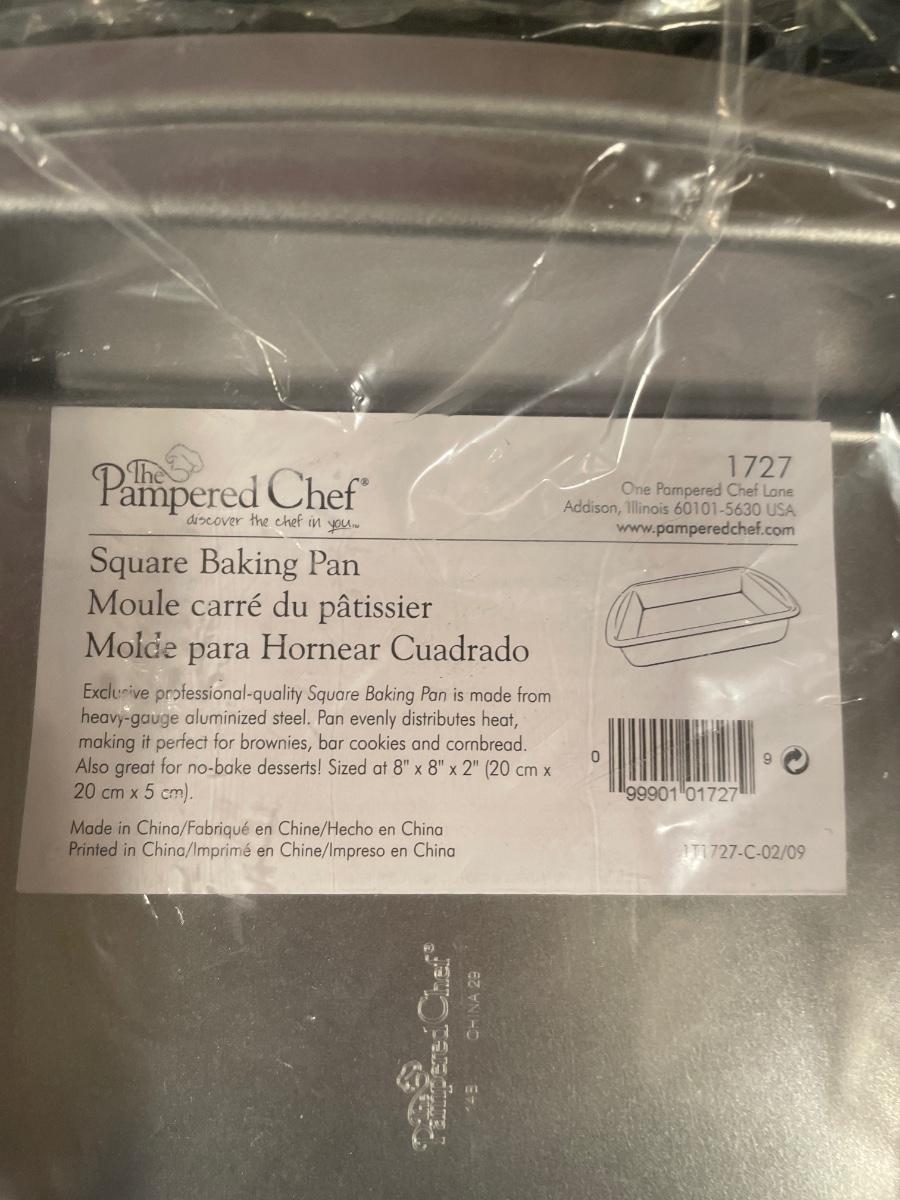 New Pampered Chef 8x8 pan, aluminum pans, glass platter
