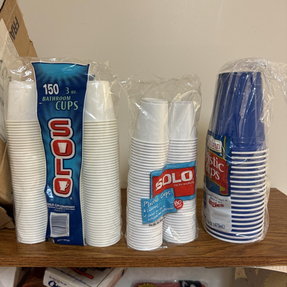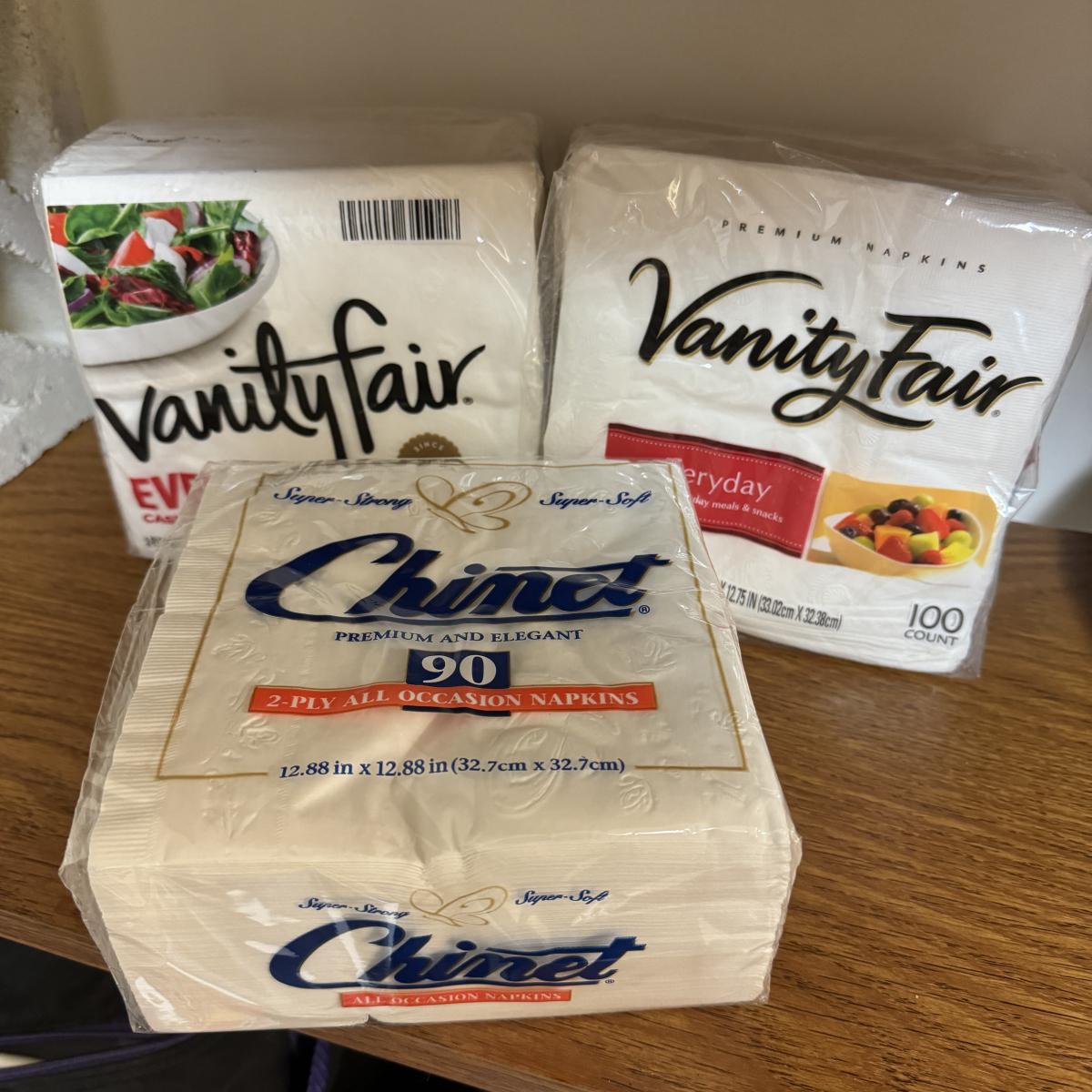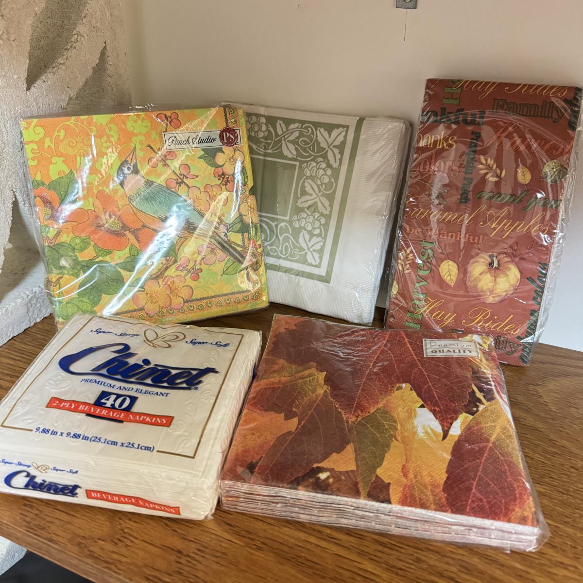 All items are new with original plastic. Lot includes a box of plastic spoons as well two smaller boxes of utensils. Also find napkins, paper plates, plastic cups and vinyl tablecloths. There is also a pad of 50 checkered paper placemats. Shipping available