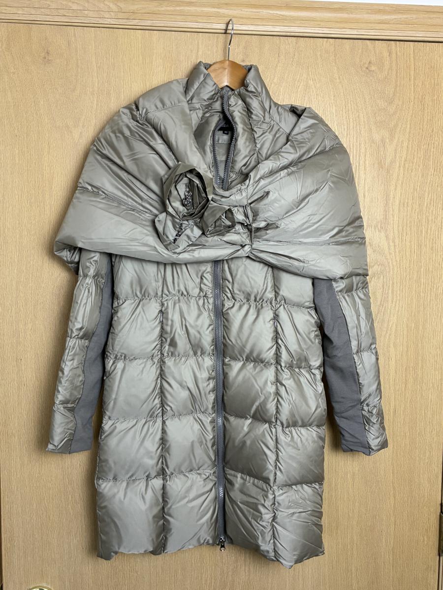 New with tags. Made in Italy this premium long puffer down full zip jacket features a removable cowl shoulder wrap which can be worn separately. Size 40 Italian which is an XS in US sizes. Measurements: 17” pit to pit (34” chest), 39” long, 15” shoulder to shoulder, 12” upper arm.