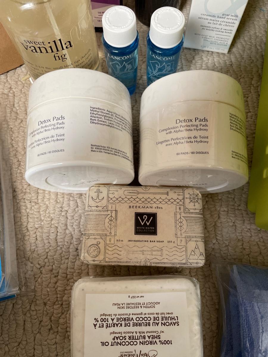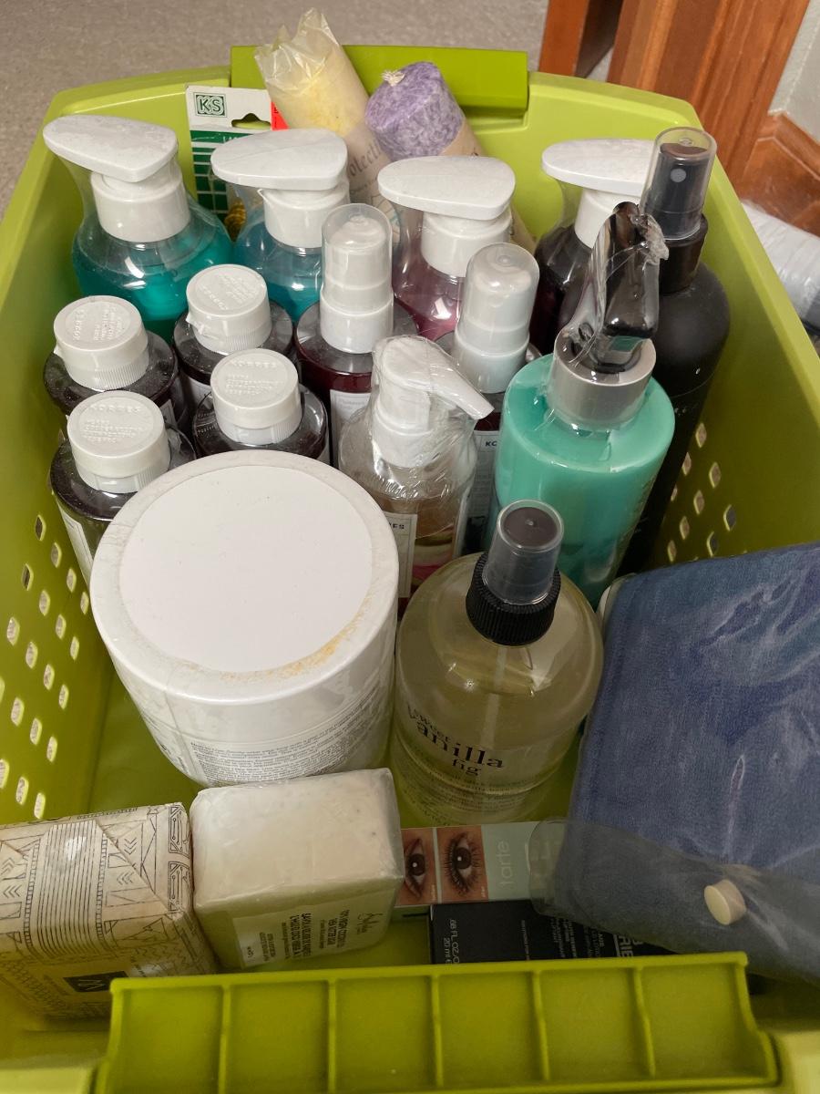These personal care items include body wash, bath bombs, hair care and I think most are in original plastic