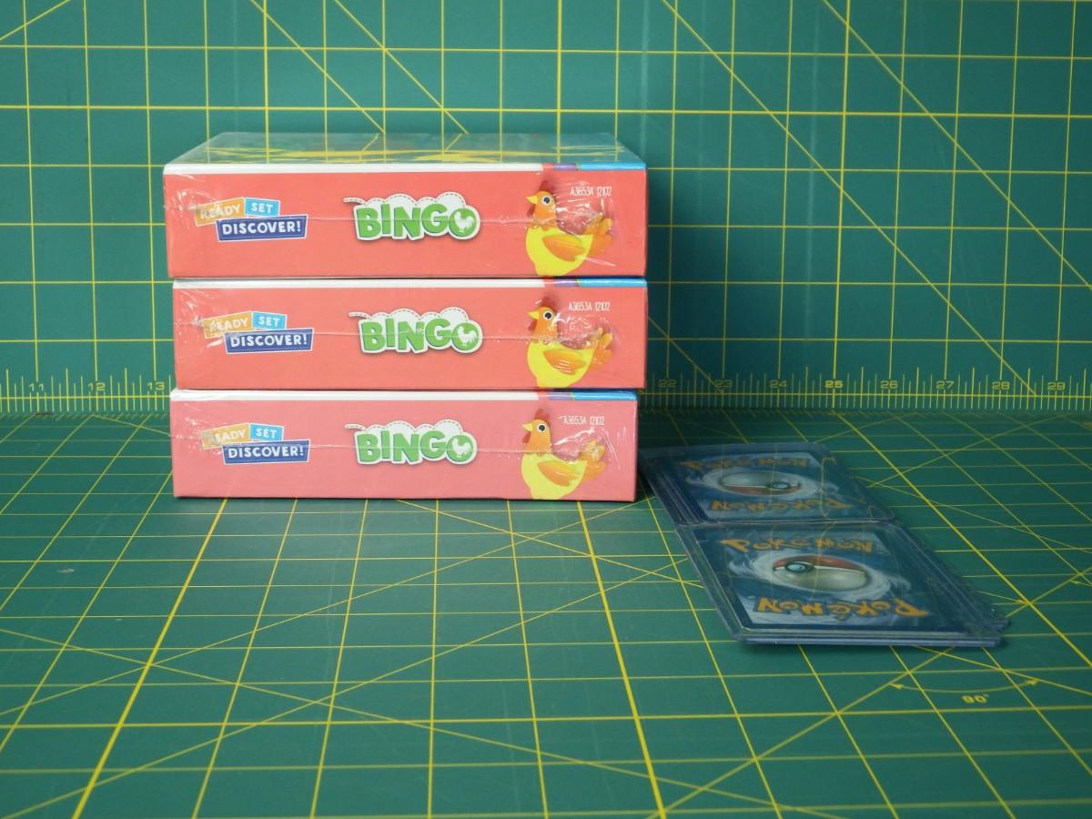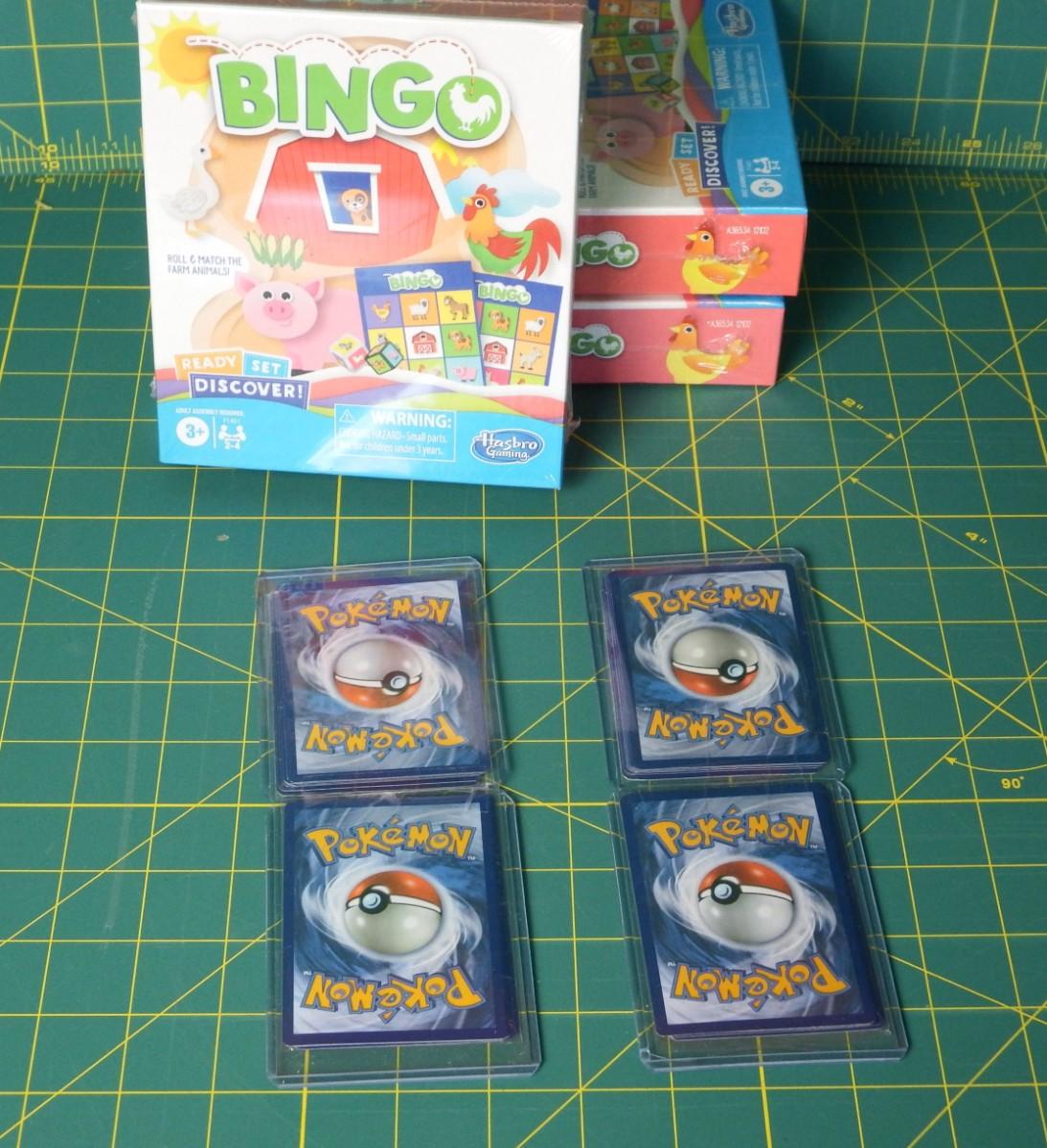 3 new farm bingo games. 4 Pokeman card packs. Each pack has approximately 12 cards.