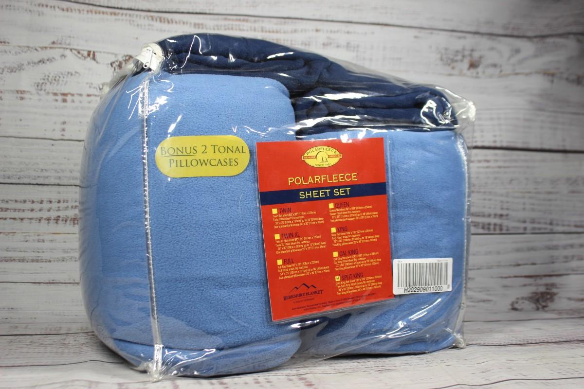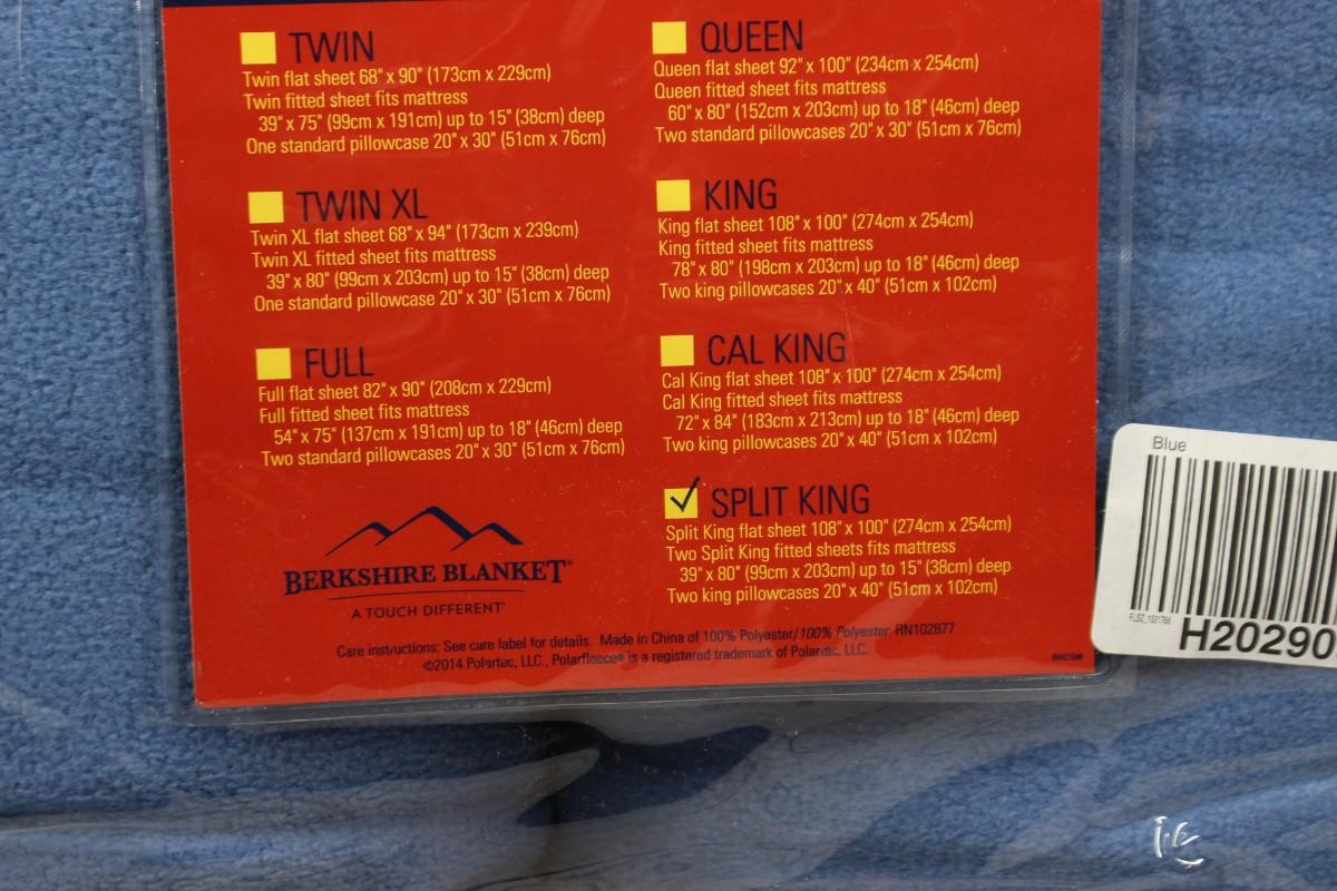 New Polarfleece Berkshre Blanket Split King Sheet Set, there are no rips or tears to the packaging and is in good condition. Has not been used and is still in the original packaging.