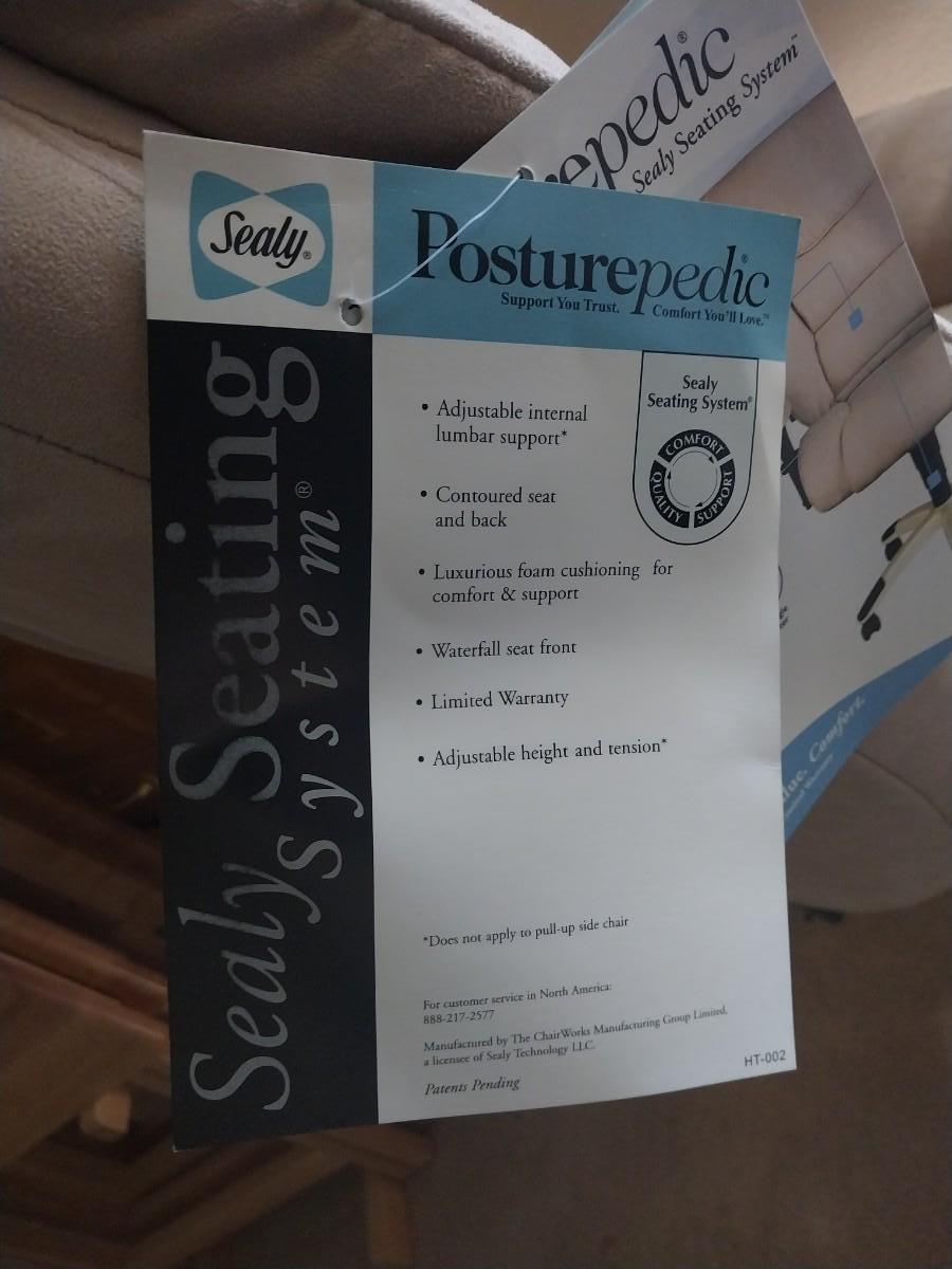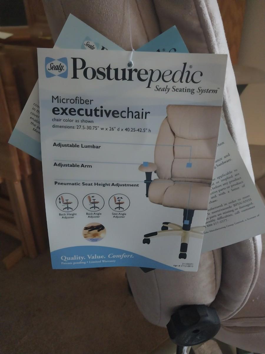 Adjustable lumbar and arm, height adjustment, by Sealy
