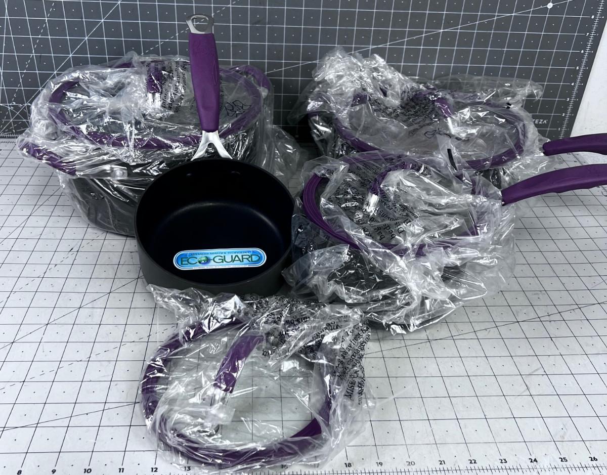 NEW Pot and Pan SET Gray & Purple NEW GORDAN RAMSEY Signature Series (4 Pans plus 4 lids) NEW