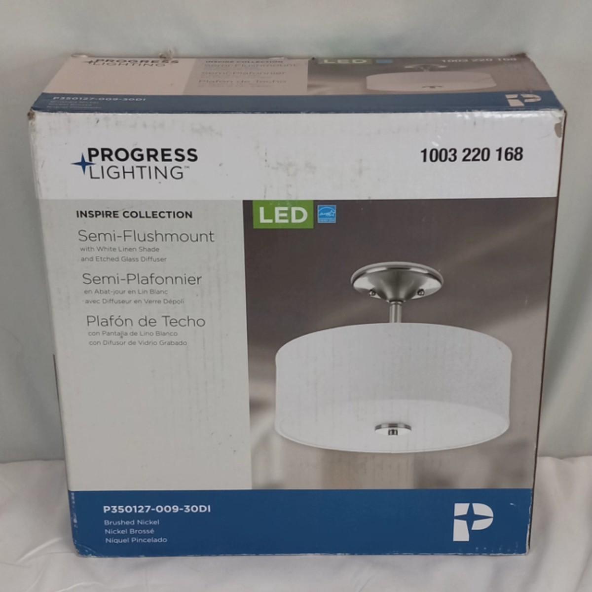 This is a brand new, open box Progress Lighting semi-flushmount LED ceiling fixture. Mounting hardware and instructions are included.