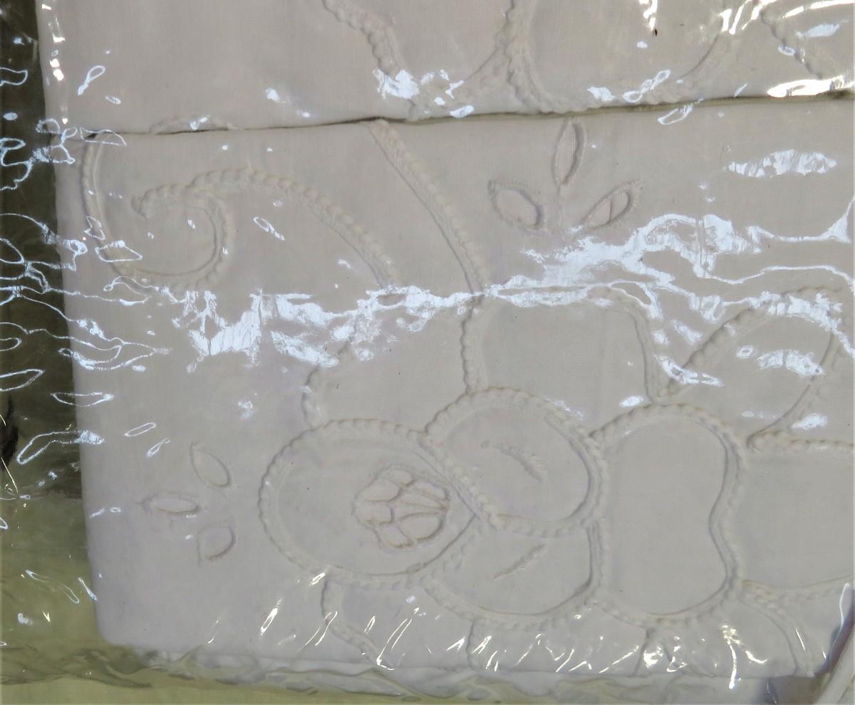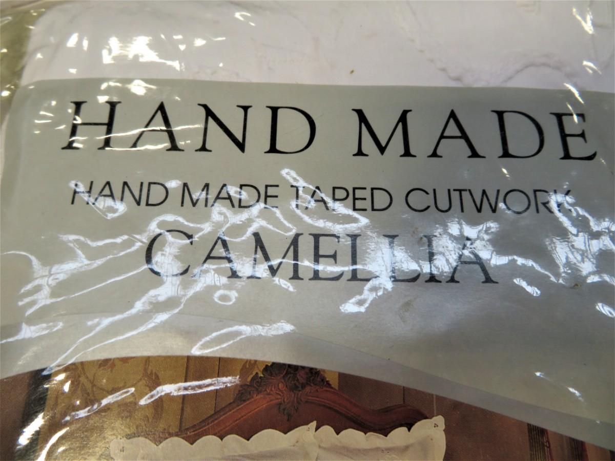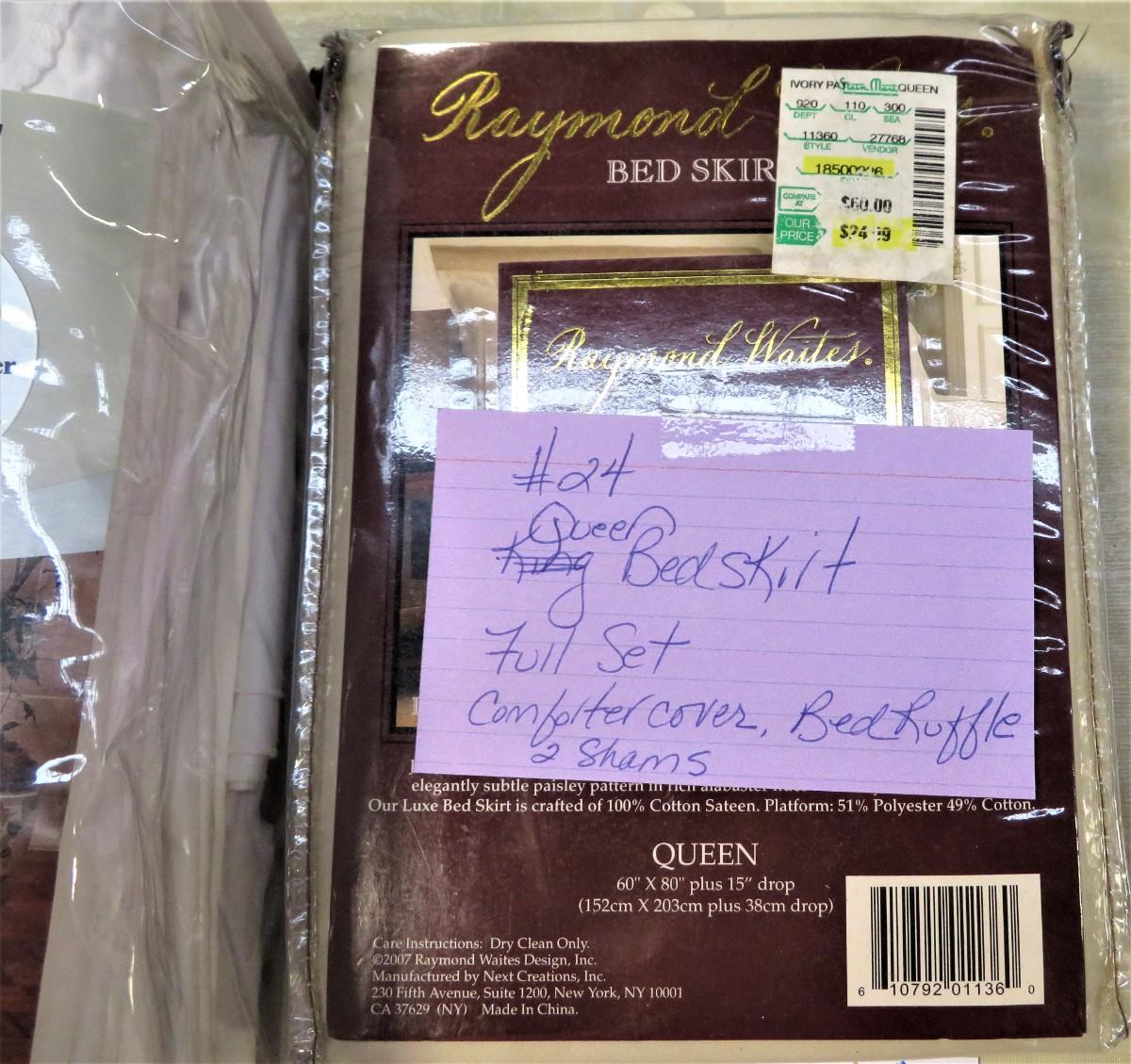 NEW in Packages - Queen bed size BED SKIRT LUXE Raymond Waites (Beige color) & Hand Made Lace 100% COTTON WHITE Bed Ruffle with 2 SHAMS for FULL SIZE Bed. See PHOTOS for contents.