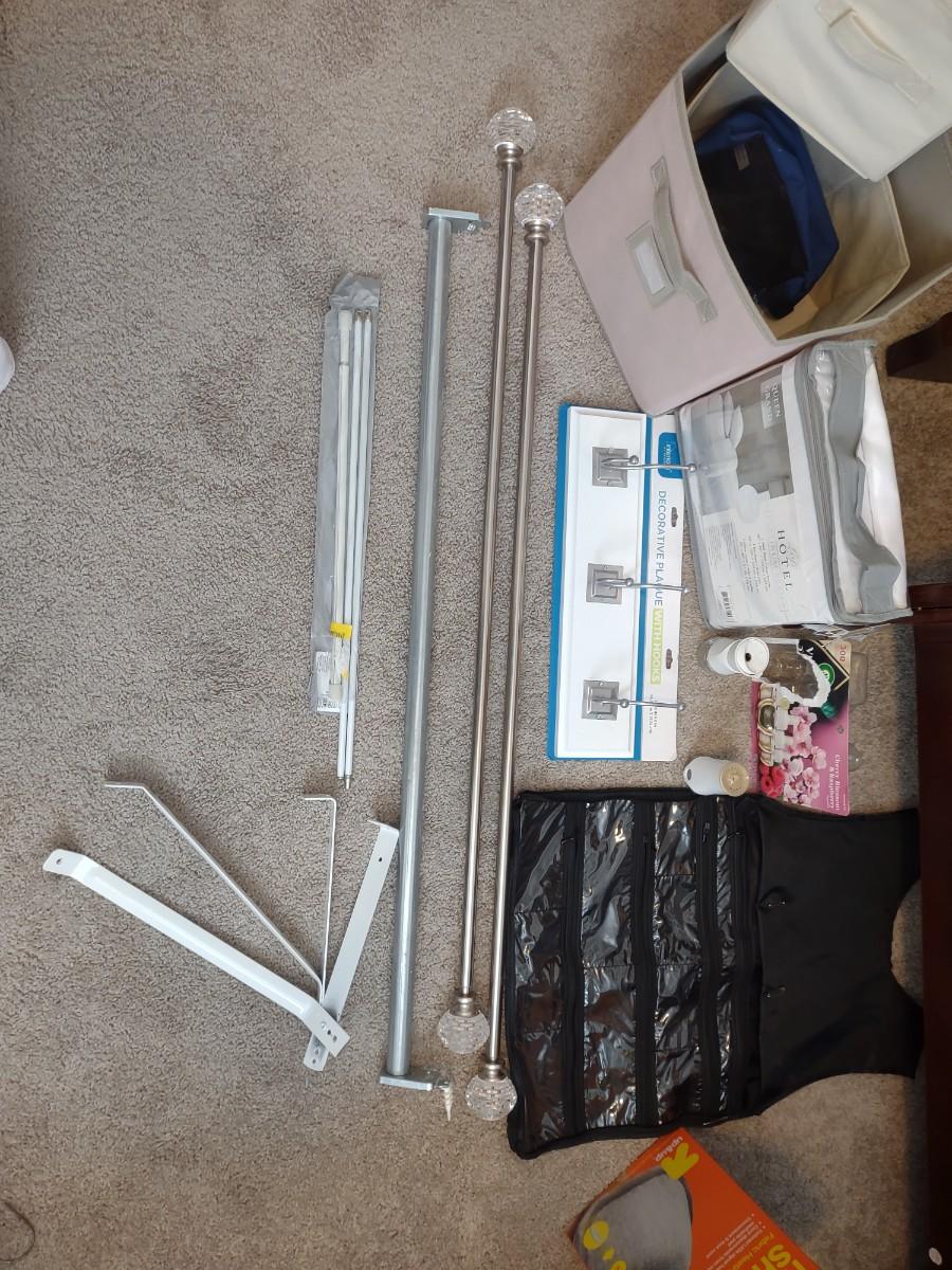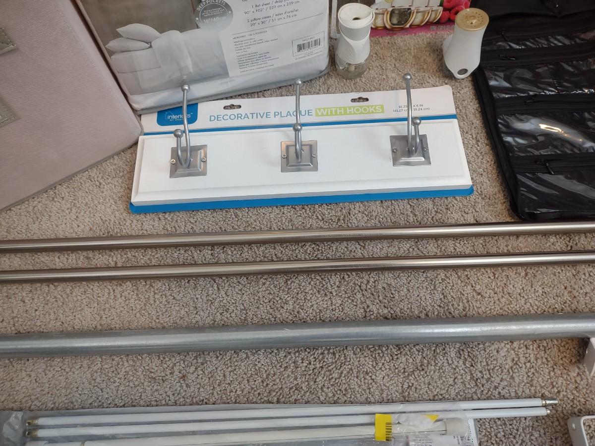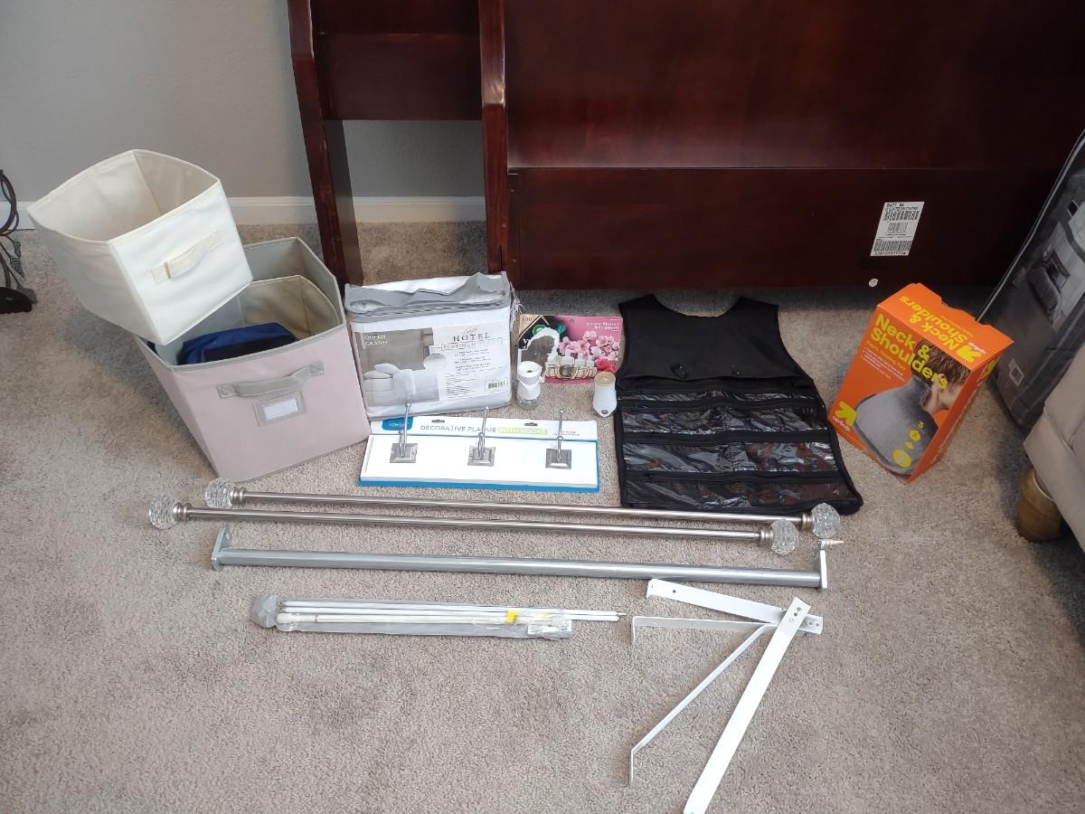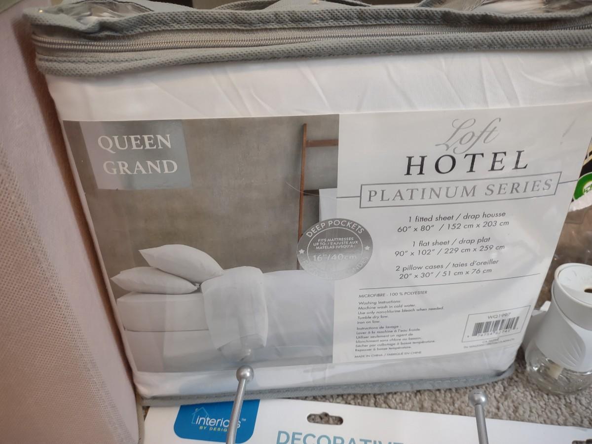 NEW QUEEN SHEETS, ORGANIZERS, CURTAIN RODS AND MORE