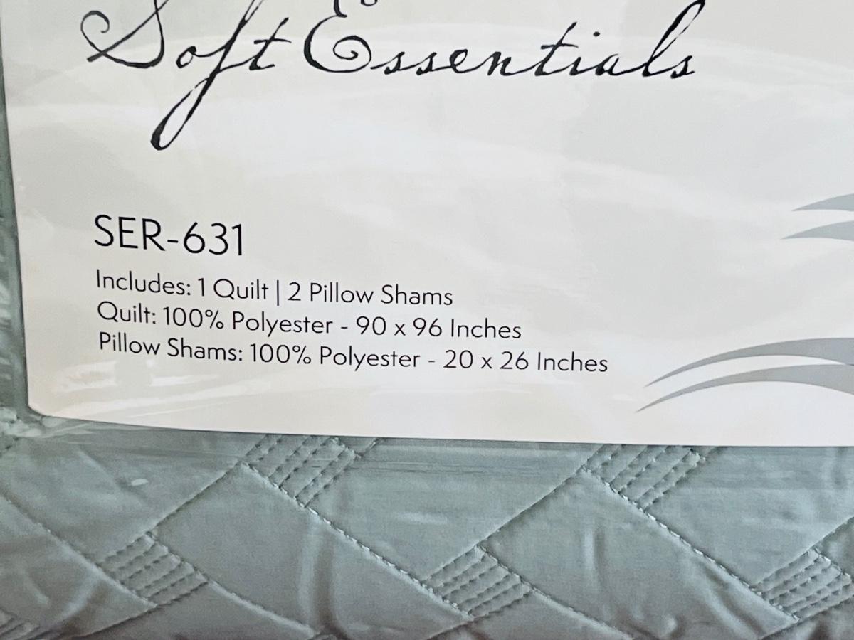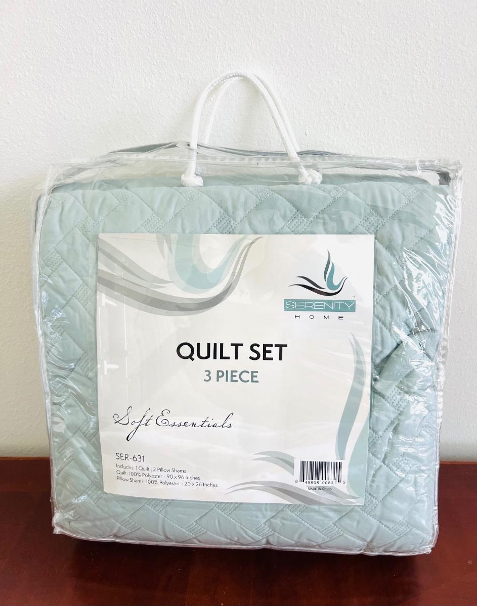 New Queen Size Quilt with two pillow shams, Color is sea foam green.