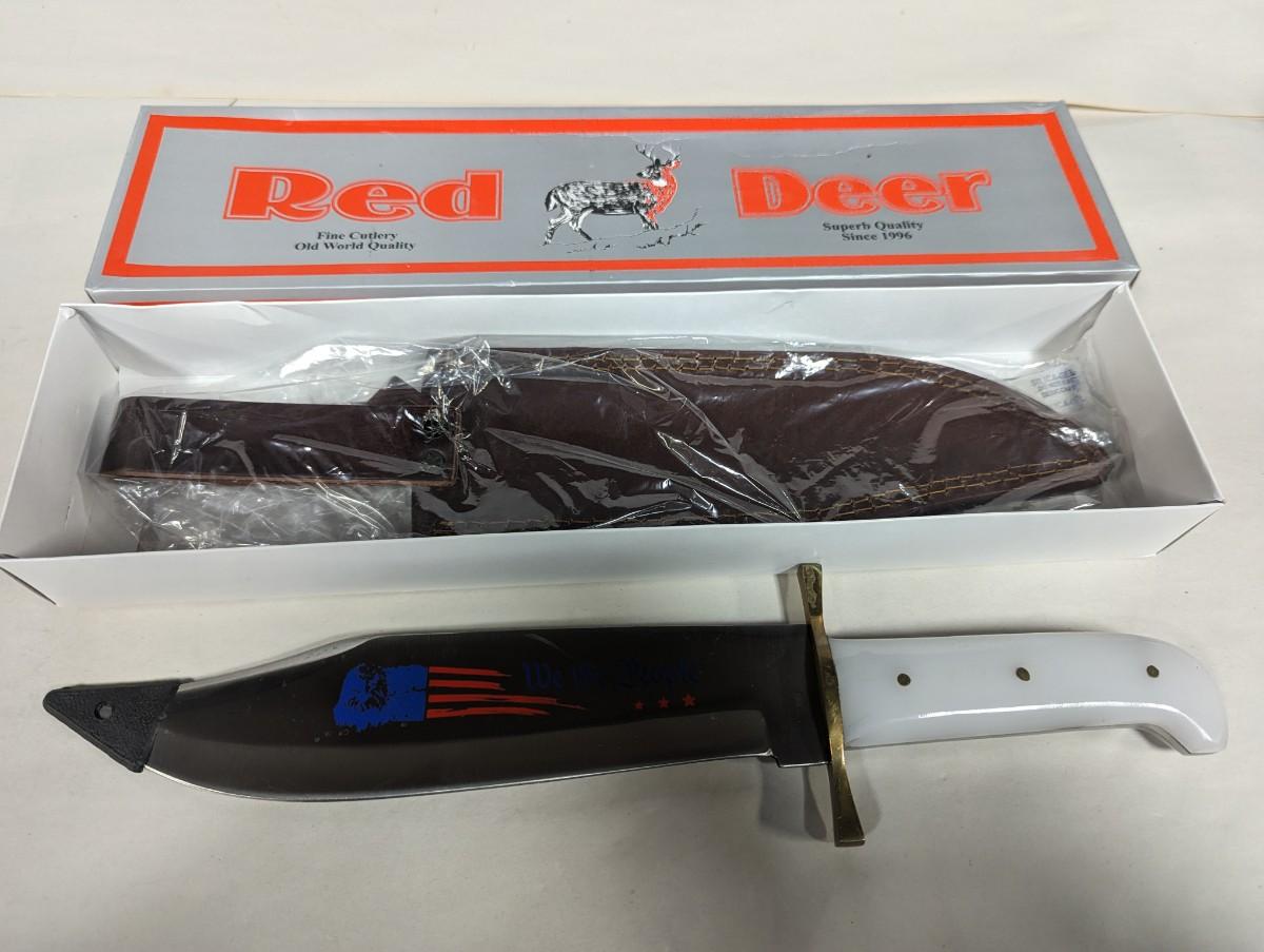 New Red Deer Hunting Cutlery with Sheath "We the People"