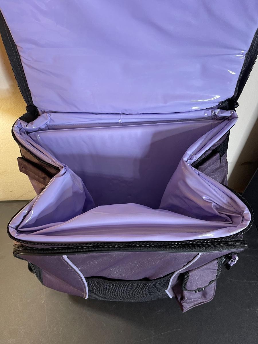 Pretty in Purple. Cooler is approx 15” H x 14” W x 13”D.