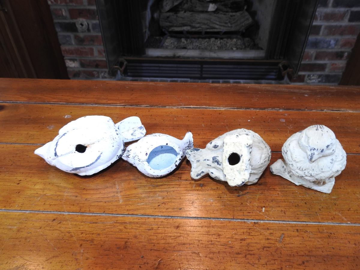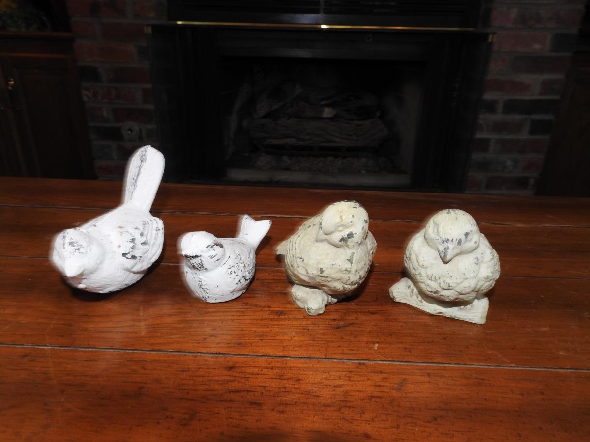 Two sets of rustic farmhouse country French distressed white metal birds. Perfect for the farmhouse decor. Very good used condition.