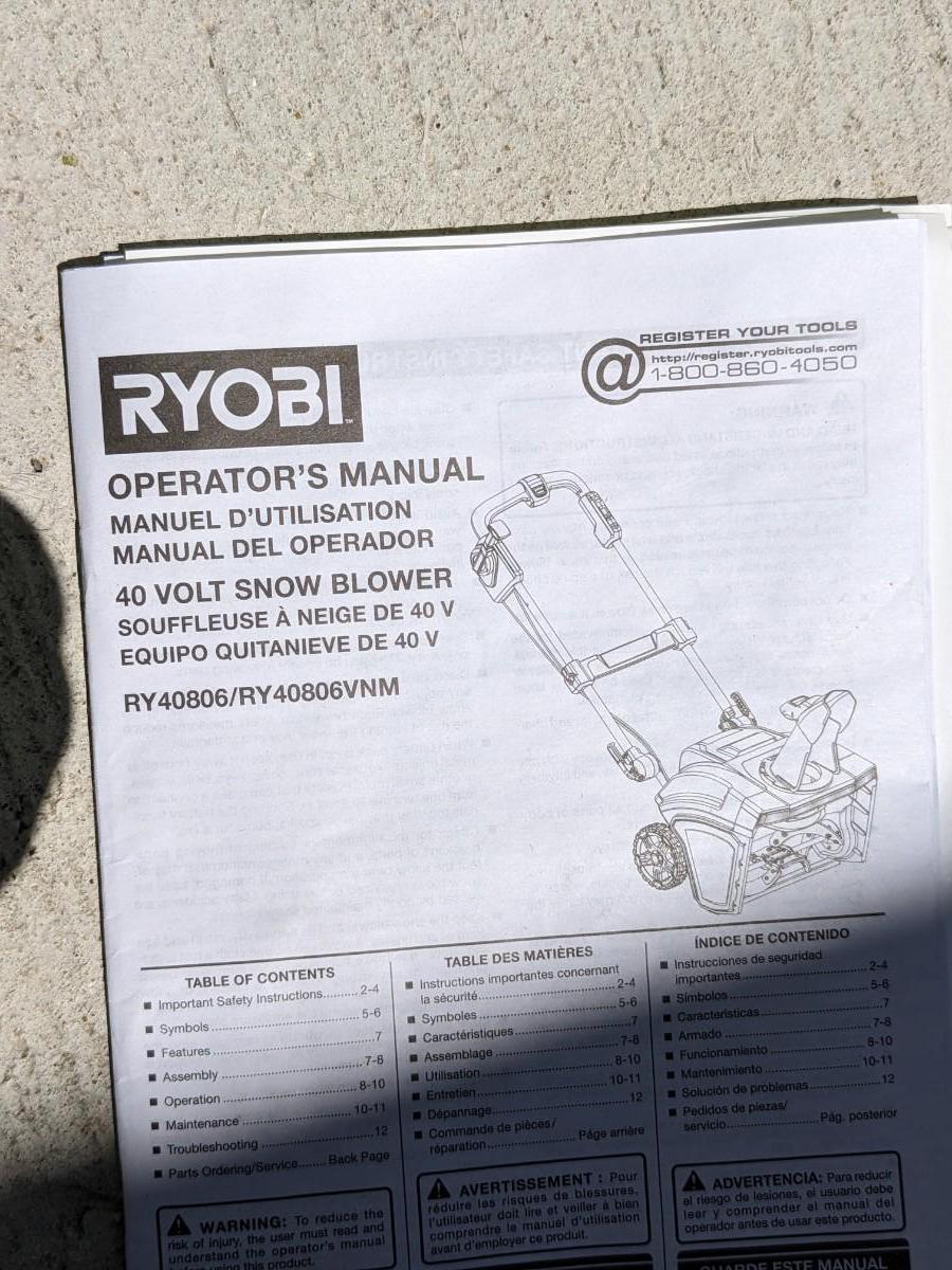 New Ryobi 40V Snowblower RY 40806