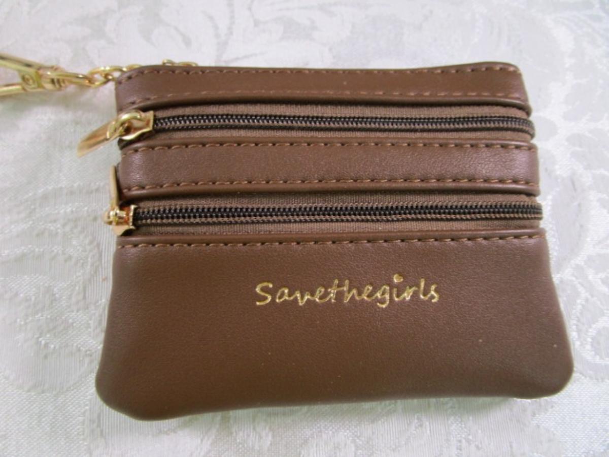 Purse is 4-1/4" x 3-1/4" & has 3 zipper pockets