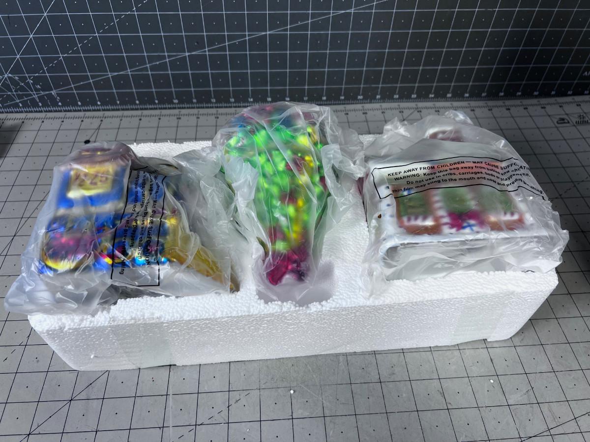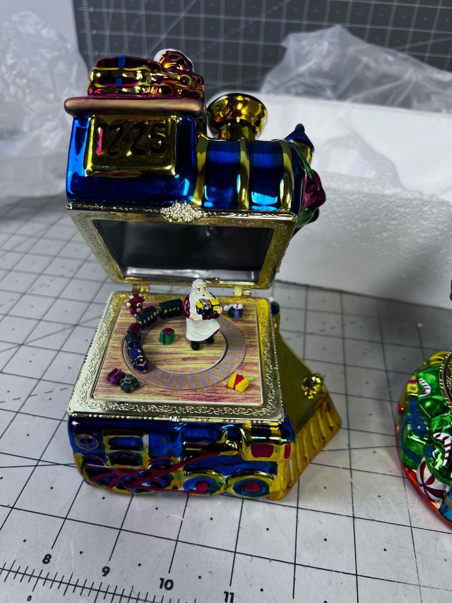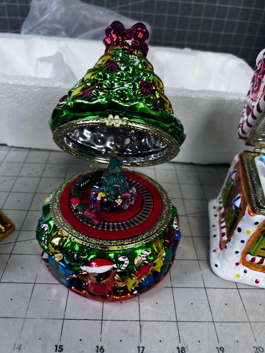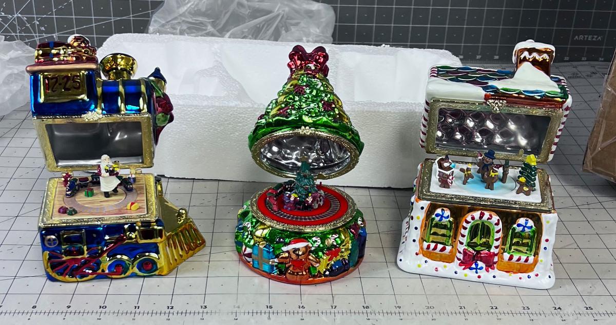 NEW Set of 3 Diorama Music Boxes, Mercury Glass NICE! NEW Train, Cottage and Tree