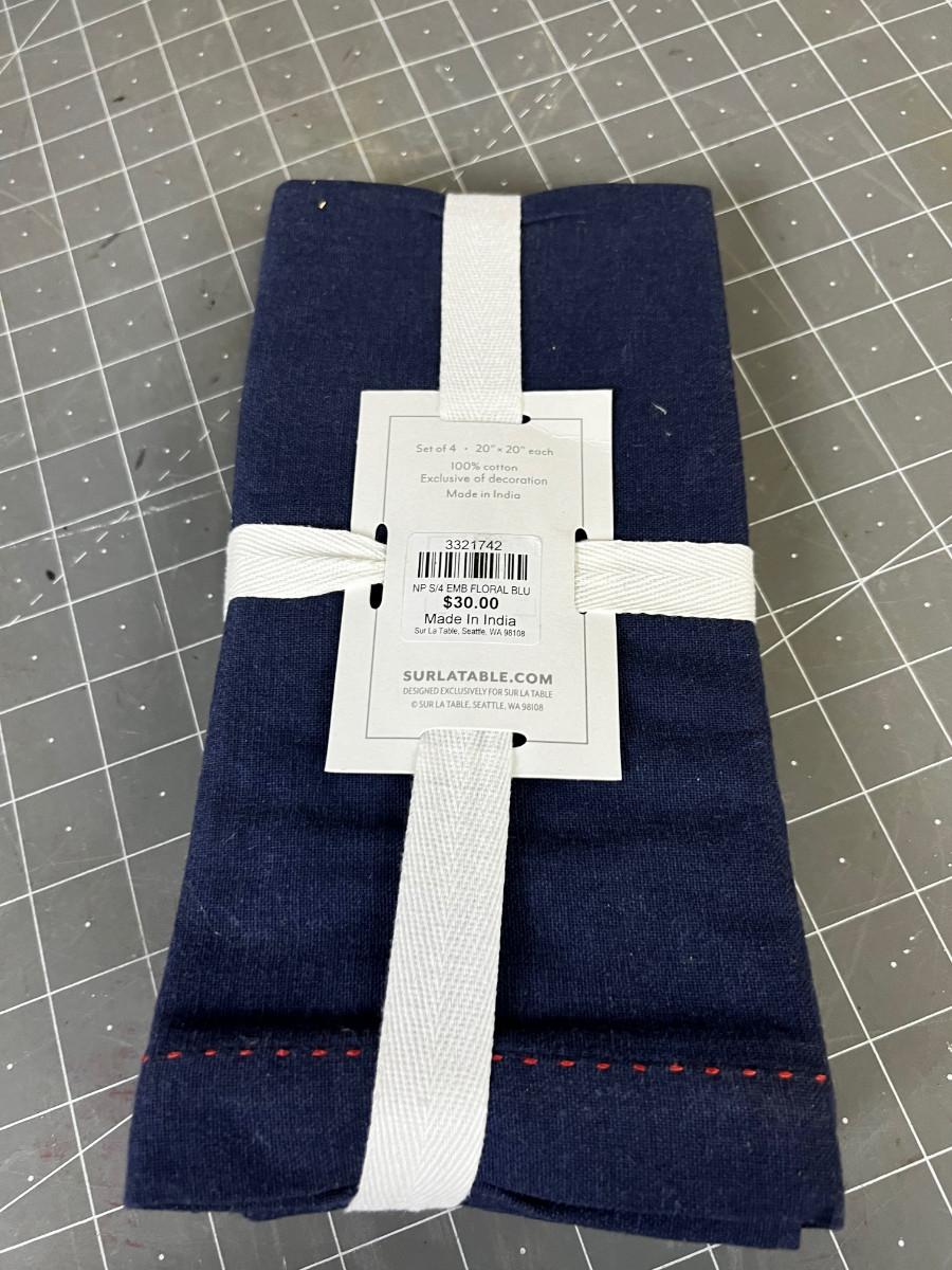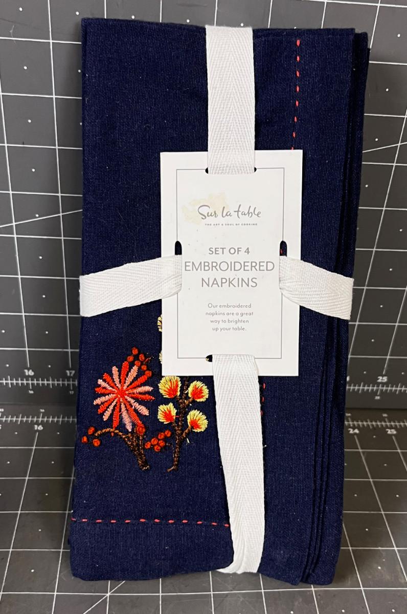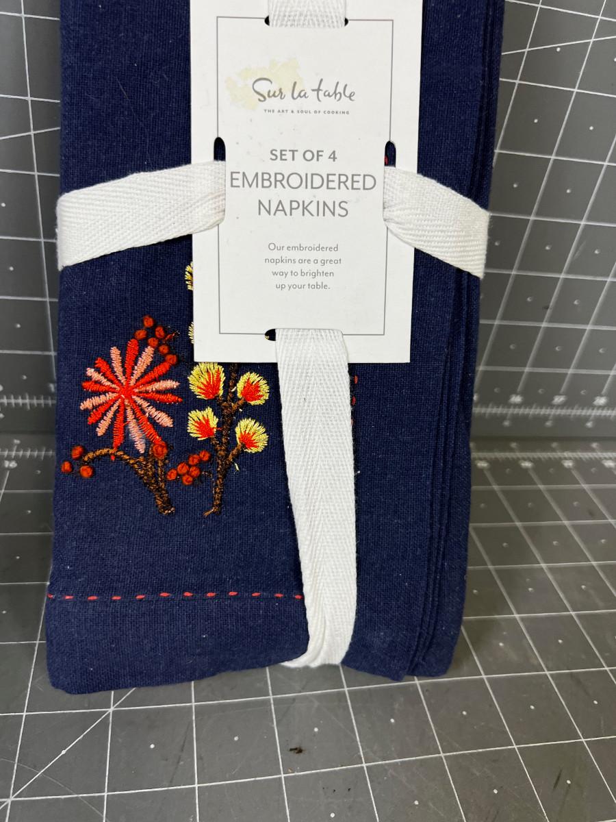 NEW Set of Sur La Table Blue Embroidered Napkins