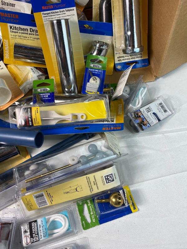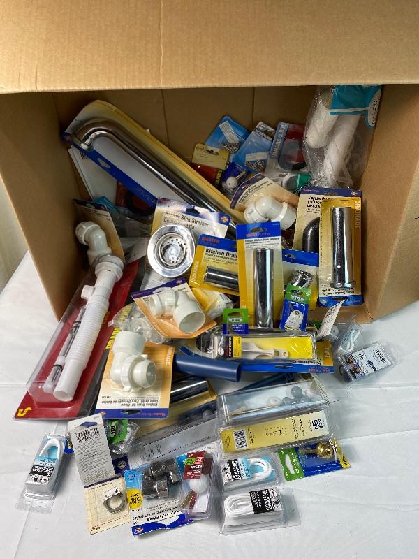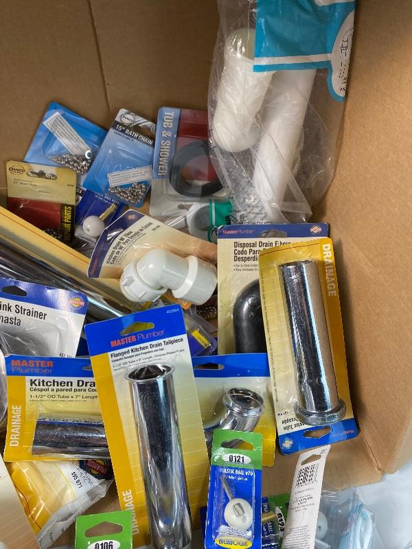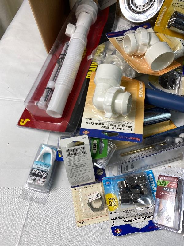 Huge lot of plumbing parts sink drains baskets bead chain packing elbows etc
