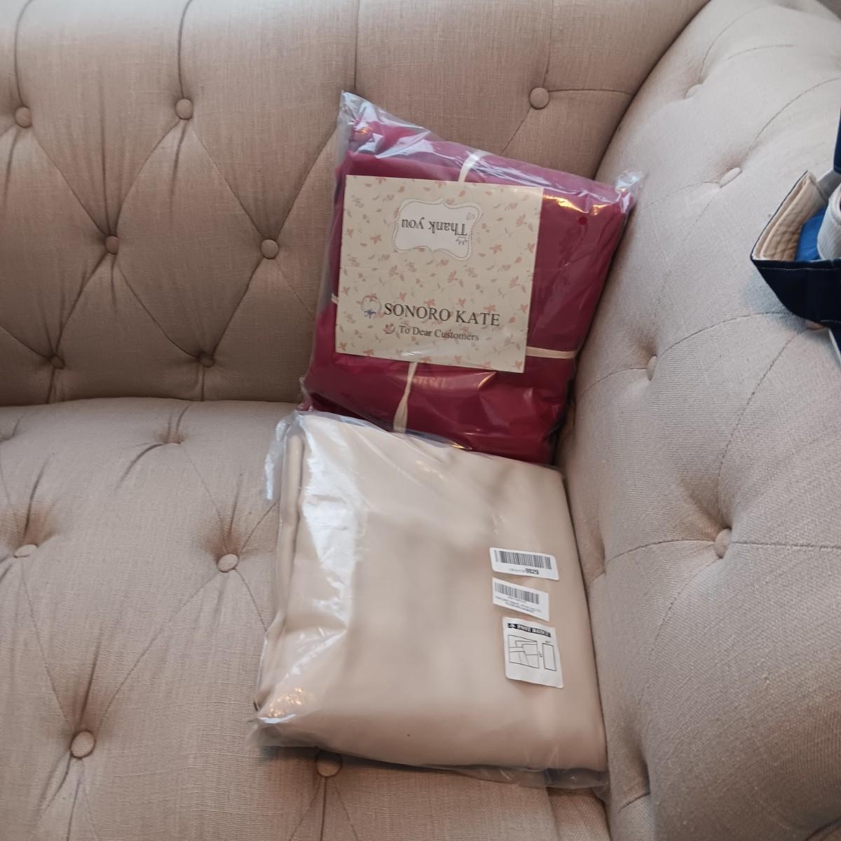 NEW SONORO KATE SET OF QUEEN SHEETS AND NEW 2 PANEL BEIGE CURTAINS 45" LONG
