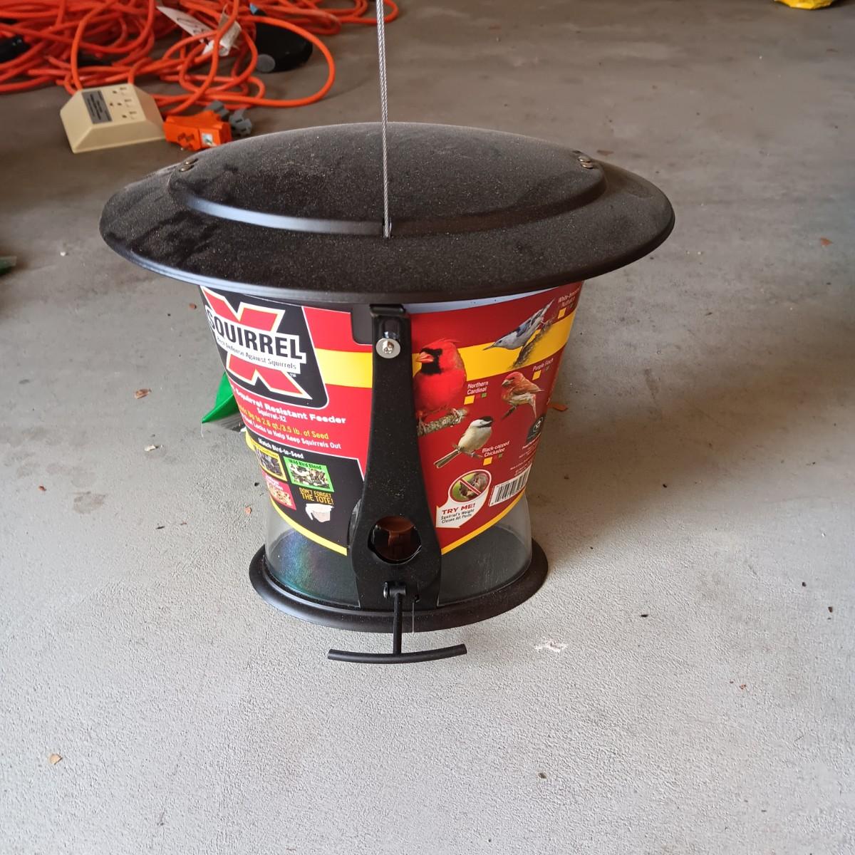 NEW SQUIRREL RESISTANT BIRD FEEDER AND A BAG OF THISTLE BIRD SEED