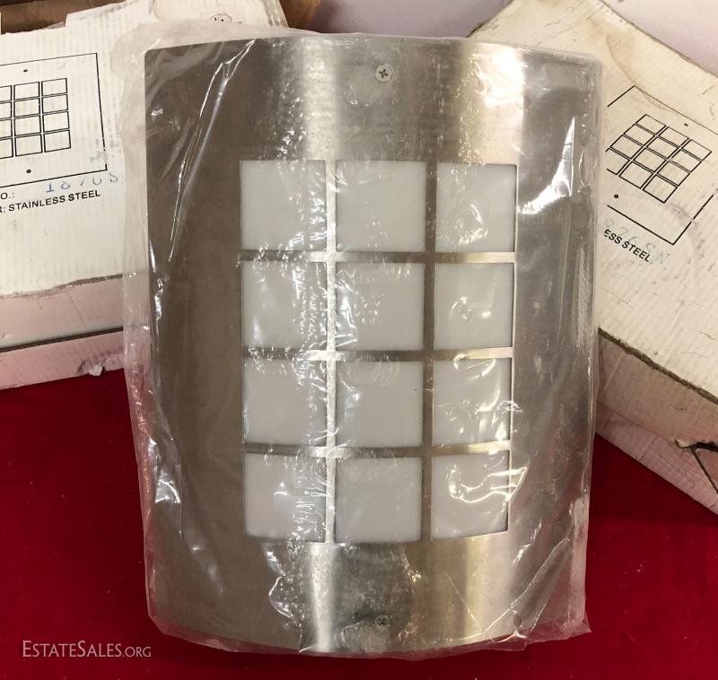 Sconces are new un-used in box, stainless steel modern look. Measure 11" by 9"