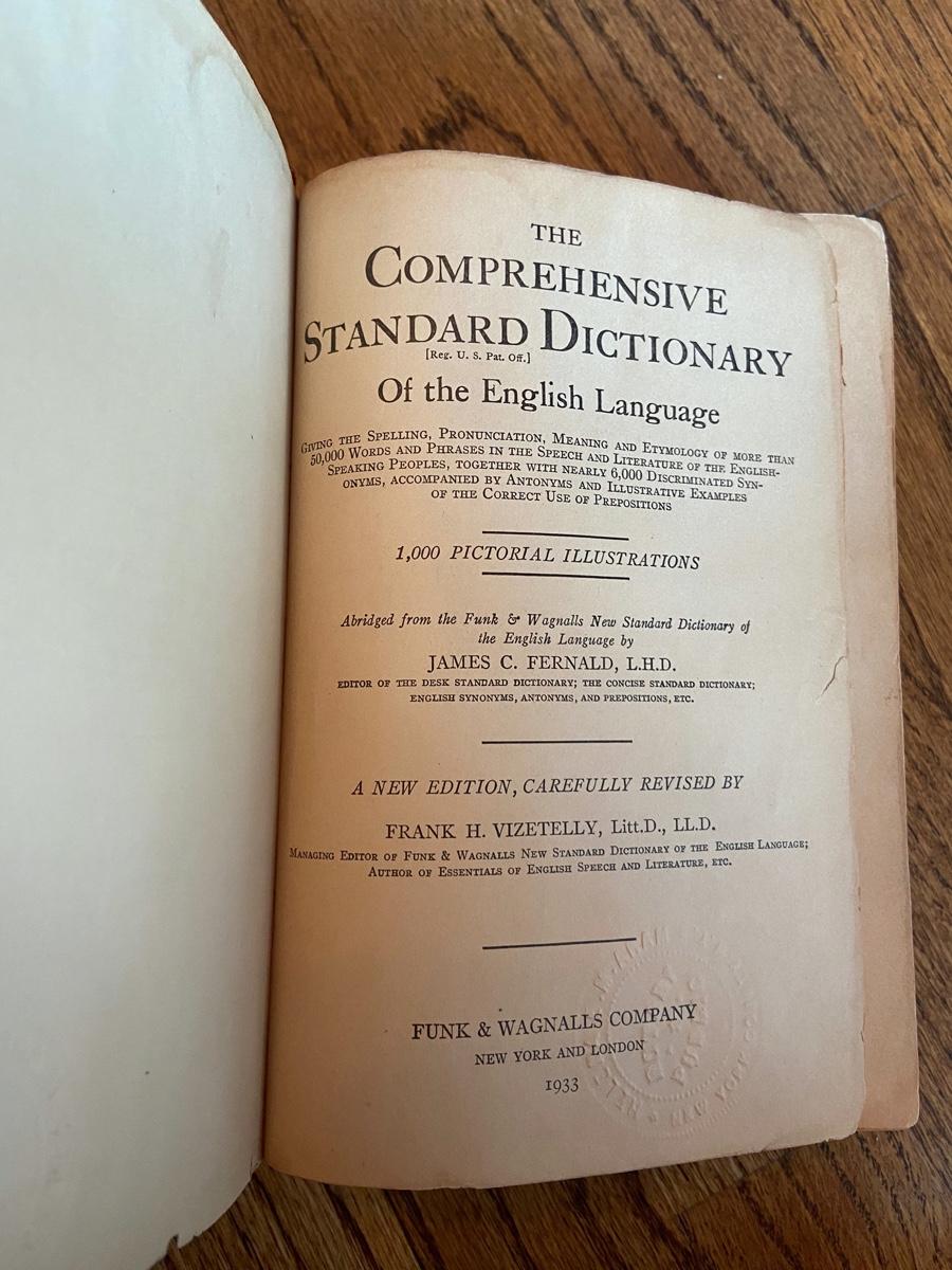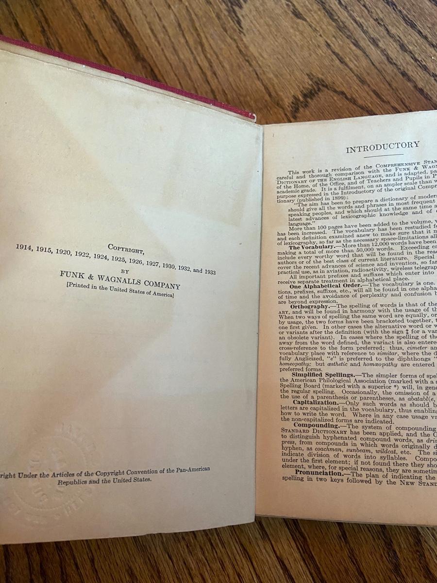 Funk and Wagnalls Comprehesive Standard Dictionary (1933), red hardcover, published by Funk and Wagnalls Co.